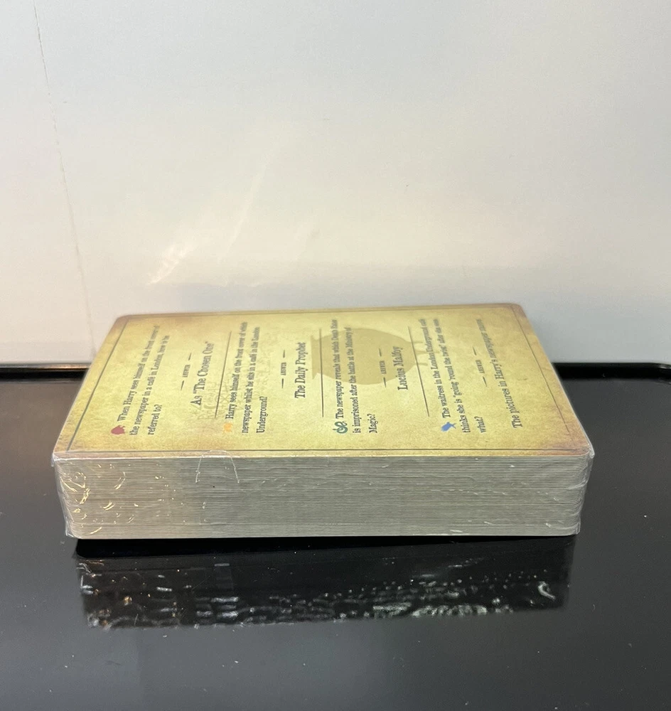 This Deck Is From Harry Potter The Ultimate Movie Quiz Trivia Game (full game not included in this sale) This listing is for the HALF- BLOOD PRINCE - FULL DECK NEW New Sealed ( see last photo for minor flaw) Use for replacement or Use Cards to test your trivia knowledge without owning the game. Smoke free Environment