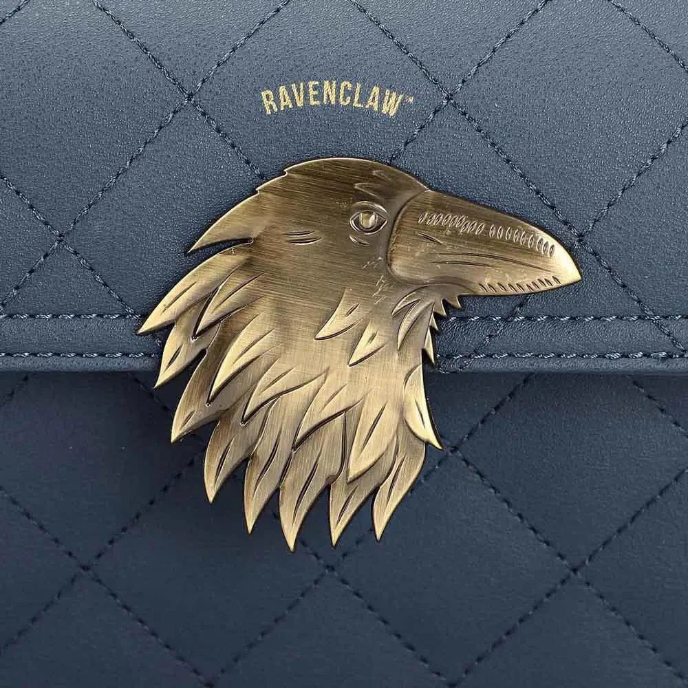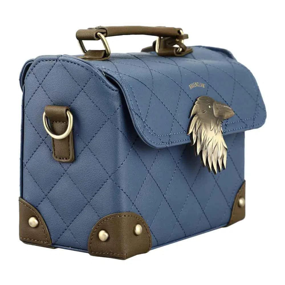 Harry Potter - Ravenclaw Mini Trunk Handbag - Bioworld Condition: New The Harry Potter Ravenclaw Mini Trunk Handbag by Bioworld is a stylish and functional accessory for fans of the Wizarding World. Crafted from high-quality quilted synthetic leather, this handbag features a sleek and sophisticated look with a charming metal badge that showcases your house pride. The Ravenclaw crest adds a touch of magical elegance, making this handbag the perfect addition to any outfit. Designed for convenience, the handbag includes a removable shoulder strap that allows for easy, hands-free carrying. Whether you're heading to class or a casual outing, this bag offers both practicality and style. The dimensions of 7.5" W x 5.9" H x 3.75" D make it the ideal size for carrying your essentials without feeling bulky. Made with durable synthetic leather, the Ravenclaw Mini Trunk Handbag is easy to care for—simply wipe it clean with a damp cloth to maintain its pristine look. With its compact design and attention to detail, this handbag is a must-have for any Ravenclaw fan looking to express their love for the series in a fashionable way. Imported for quality, it brings the perfect blend of magic and style to your wardrobe.