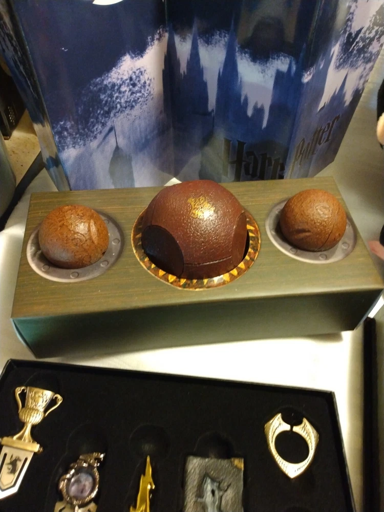 I listed these as used only because they have been stored for a while and the boxes are not in mint condition. And there is not a box for the quidditch balls. 4 wands 3 Funko plush, bookmarks playing cards, poster. All contents in good condition. Would make a great Christmas present for the Harry Potter lover.