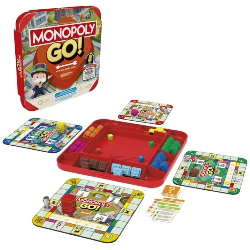 The Monopoly GO! game is what fans love about the popular mobile app game in a social tabletop version! In this thrilling family board game, the first player to build a landmark wins. To get started, each player chooses a mini gameboard with a favorite location, plus a matching-colored die. Then everyone rolls their die and moves that many spaces around their board - at the same time! If a player lands on a color space, they take a landmark block from the tray and add it to their board. Use Bank Heists, Shut Downs, and Mega Shut Downs to sabotage rivals. The first to stack 4 matching-colored landmark blocks on their board wins! Searching for fun family games for kids, teens, and adults? This strategy game is a great choice for anytime play, and it makes a cool gift for kids ages 8+ who love Monopoly board games. Includes Portable Game Tray (with storage area and lid), 4 Double-Sided Mini Gameboards, 4 Tokens, 4 Dice (1 red, 1 yellow, 1 green, 1 blue), 40 Plastic Landmark Blocks (5 brown, 5 light blue, 5 pink, 5 orange, 5 red, 5 yellow, 5 green, 5 dark blue), 10 Chance Tiles, 4 Plastic Mr. Monopoly Markers, 2 Cardboard Bank Heist Dials (with plastic fasteners), and 4 Reference Cards. Ages 8 and up. For 2 to 4 players ||DPSP-IN195166276182 Our Store We have more items available. Please check them out. Shipping & Handling Flat shipping rate, if specified, does not apply to Canadian territories and remote areas. For U.S., flat shipping rate only applies to lower 48 states. Please contact us for shipping rate if flat shipping rate does not apply to you. Upon receipt of payment, item will ship via Canada Post surface or UPS, Fedex Ground service or another economic service within the timeline specified in item listing. If possible, we will combine shipping for multiple items. International Orders Import duties, taxes, customs fees and charges are not included in the item price or shipping charges. These charges are normally collected when you pick up the package. Please check with your country's customs office on what these additional charges will be prior to buying the item(s). International buyers are responsible for these charges. Please note that package shipped from outside your country can be held up in customs and it can cause delay in shipping time. This is beyond our control and there is nothing we can do to speed up the process. Sales Tax For the Canadian buyer, applicable retail sales tax will be charged. Taxes are charged on both Item Price and Shipping & Handling charges if applicable. Store Policy Sales Agreement Upon purchase, you have entered a binding contract under the terms of the listing. If an item is out of stock or on backorder , you will be notified and given the option to wait for the item to become available, choose another item, or a full refund. Backordered items are shipped as they become available. Return and Refund Unless specified otherwise, every item purchase (except health, hygienic, food products and items with No Return Accepted specified in the listing) comes with unconditional money back guarantee minus shipping & handling charge and 20% restocking fee . Before returning, please contact us for a RMA number. All returns must come with a RMA number. Return without a RMA number will NOT be accepted. Buyer is responsible for the shipping cost of returning the item(s) to us and all original shipping, handling, insurance, and other fee associated with the returned item(s) are not refundable. For free shipping item(s), we still pay for shipping when sending item(s). The shipping cost associated with free shipping item(s) is not refundable. All merchandise returned must be in its original states with tag intact, undamaged, clean and unused. Any return must be made within 30 days of receipt. Upon receipt and careful examination of the returned merchandise, refund will be issued and you will be notified after the refund is processed. Please allow 5 business days from the time we receive your returned item(s) for your refund to be issued. Communication All communication must be conducted via online message. We do not offer customer service over the phone. We answer all messages promptly, usually within 1-2 days. As a general note, if you do encounter a problem with your item(s), please contact us as soon as possible before leaving a negative feedback. We will do our best to help you. Contact Us For local pickup, special requests and special offers, please contact us.