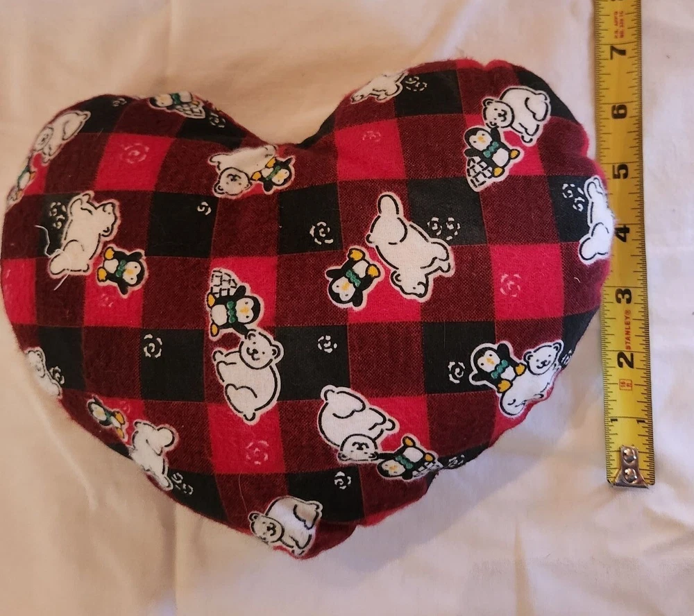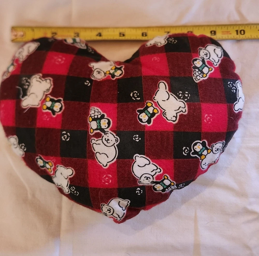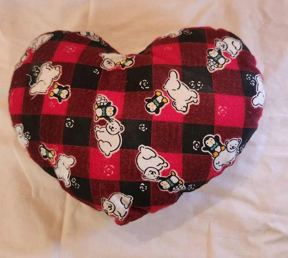Heart shaped pillow flannel penguin polar bear Christmas cozycore