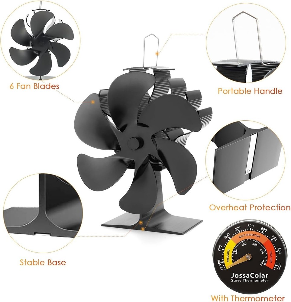 100% Money Back Guarantee if you are not satisfied with your purchase! ____________________ Description: Wood Stove Fan Heat Powered Fireplace Fan Non Electric, Thermal Fan for Wood Burning Stove//Log Burner, w/Stove Accessories Thermometer ●【Heat Powered Stove Fan】JossaColar heat activated is powered by heat and no need batteries, can be used for wood burning stove and heater, a perfect wood stove accessory. ●【Upgraded Aluminum Fan Blade】: The Aluminum curved fan blade lasts longer and spread more heat around the room. The is 6.5in long and 7.7in high, the heat powered fan can comfortably be used with wood stoves, log burners, and fireplaces. ●【Promote Hot Air Diffusion】: A wood stove or a fireplace is a great way to heat up any room—but sometimes, it can overheat certain areas while leaving others freezing cold. A thermo fan for wood stove can distribute warm air evenly throughout the room to stay warm. ●【Silent Operating <25dB】: This heat fans top of stove operates silently, Whether you sleep or work, woodstove fan doesn't cause you any trouble. ___________________ 100% Money Back Guarantee: We offer 30 Day Money Back Guarantee from the day you purchased if you’re not satisfied with your product. If you have any questions about our products, please contact us as soon as possible. Customer satisfaction is our absolute priority. Shipping: We are always working hard to ensure your package arrives as soon as possible. Please understand that some factors like weather, high postal traffic, and the performance of shipping companies are outside of our control. We offer free shipping to the lower 48 states and ship within 3 business days of payment, usually sooner. We do not accept P.O. Boxes. Please provide a physical address. You will be notified via eBay messages as soon as your items ship. Delivery: We will ship out the item in 2-3 working day after receiving the payment. Usually the delivery takes 2-5 business days. If you don't receive the items after 10 days, please feel free to contact us. You will get a replacement or a full refund. Please DO NOT open a return request or leave negative feedback without asking for help. Returns (Get Free Return Label): We offer a 30-Day Return Policy on defective/wrong items or items which you are not completely satisfied with. You have the option for a full-refund or an exchange of the item. No need to buy eBay return label. Contact us via eBay messages and get free return label. Returned items must be in all of the original packaging and include all of the original accessories or items that came with it. The item and package should be in original condition. Contact Us: Any queries or issues incurred, please feel free to contact us via eBay message, we will get back to you within 24 hours. Please DO NOT open a return request or leave negative feedback without asking for help. Feedback: Your feedback is very important to us. After you get your package and you are satisfied with our service, please leave us positive feedback. We are highly appreciated for your POSITIVE feedback and 5 stars. Enjoy shopping.