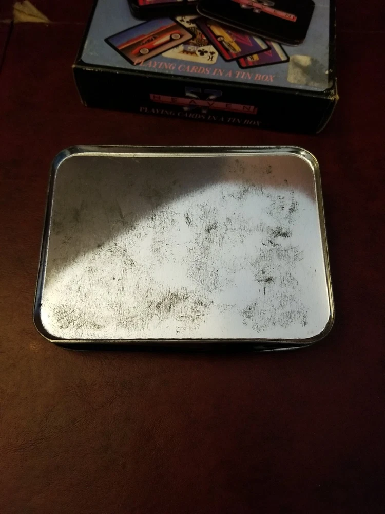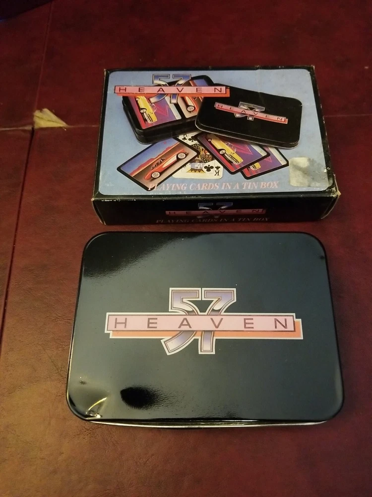 Heaven 57 Automotive Playing Cards - Two Sets in Metal Box New. There is a dent in the tin.