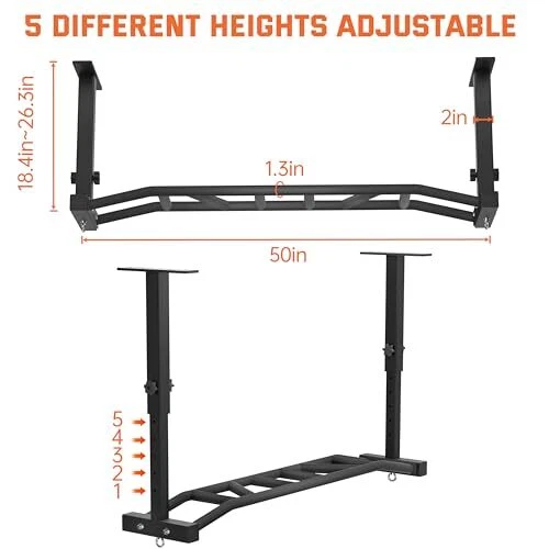 Return Policy Fast Delivery Trusted seller Heavy Duty Wall Mounted/Ceiling Mount Pull Up Bar - Adjustable & Multi-Grip Chin Up Bar for Indoor and Outdoor Workouts, Supports to 600 Lbs Product Description SOLID CONSTRUCTION & DURABLE:Our heavy duty ceiling mount pull up bar are constructed of high-quality 8 mm sheet steel and finished with a black metal powder coat for maximum comfort, stability and safety, and can support up to 600 lbs ADJUSTABLE HEIGHT & SPACE SAVING DESIGN: With our garage pull up bar, the height of the support arms can be adjusted in five positions and the distance from the mounting surface can be adjusted from 18 inches to 26 inches, allowing for a perfect fit for your space and workout preference,Its space-saving design fits I-beams and H-beams, easy to dismount and store in closets or under your couch INCLUDE 2 ROUND ANCHORS:Attach more to your 'wall pull up bar', like suspension straps, training ropes, and yoga straps. You can even hang a heavy bag for boxing training. Add diversity to your fitness routine with our 'outdoor pull up bar' VARIED HANDLE POSITIONS: Our joist mounted pull up bar features 14 different grip positions, enabling you to switch your workout regime and different muscle groups. The diameter of the handle is 1.5 inches, making it more suitable for long-lasting exercising EASY INSTALLATION: rafter pull up bar comes complete with all necessary mounting screws including wood screws for wood mounting and pull-pop screws for concrete walls. The mounting holes are spaced 48 inches apart, perfect for accommodating ceiling studs SATISFACTION GUARANTEE:At , we are confident that you will love our 'pull up bar wall mounted'. But if you are not satisfied for any reason, you can return it within 90 days for a replacement. We also offer a 2-year protection plan for extra peace of mind Shipping Returns Payment Shipping Shipping is FREE to all addresses other than APO/PO boxes in the lower 48 states. All our stock ships from US-based warehouses. Shipped via USPS or UPS (depending on location and package weight) Unless stated otherwise, all orders will ship within 24-72 hours of your payment being processed. Check our feedback to see the great reviews of FAST shipping we offer. Returns Seller does not accept returns Payment We currently accept payment via eBay managed payments only. Once payment is cleared, we will dispatch your shipment within 1-3 business days. Please refer to the "Shipping" tab for more information regarding shipping speed to your destination.