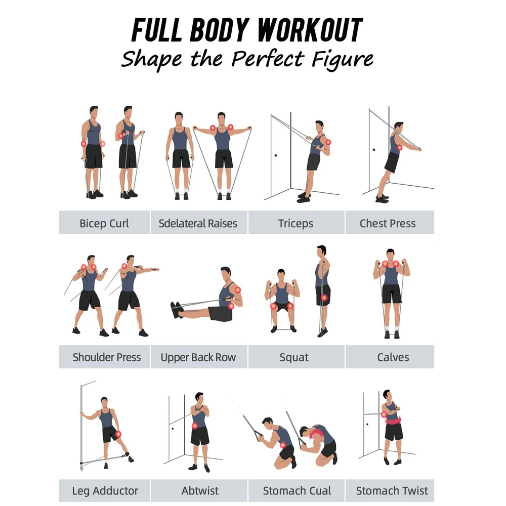 Why choose resistance band suit? 1. When we design a new product, we never skimp on using high-quality materials. Of course, we can use a smaller carabiner to save money, use cheap nylon to make ankle straps, and even make door anchors smaller, but when others choose to go this way, we don’t do this, our products It is a commitment to the high quality of life! 2. The newly upgraded resistance band suit is healthy and harmless, you know you can rely on your fitness resistance band suit! 3. Purchasing products is an investment, and we will ensure that you continue to use them in the next few years! Resistance band suits, exercise bands, exercise bands, fitness training bands 1. They are a great alternative to weightlifting and traditional fitness equipment, and a great choice to meet your home gym and travel need 2. Resistance bands can help you complete any number of training actions, just change your body posture to change muscle tension 3. This makes them very suitable for any type of strength training program. The wristband occupies a small space and is easy to carry. From beginners to fitness experts, anyone can use it The box contains: 1 x Resistance Bands Set 1 x User Guide 1 x Blessing Card 240 lbs Heavy-Duty Resistance Bands Set: Includes resistance bands in different colors: white (10 pounds), gray (20 pounds), blue (50 pounds), grass green (70 pounds), black (90 pounds). progressive resistance training can be used individually or in combination, with resistance ranging from 10 pounds to 240 pounds, suitable for beginners to professionals Elevate Your Home Workouts: resistance bands are made from natural latex for increased durability and elasticity, high standards ensuring a longer lifespan. With 240 pounds of resistance, you can achieve the same results in 1 hour as you would with a 150-pound resistance band in 2 hours Comprehensive Full-Body Training: Ideal for physical therapy, muscle training, and fat burning. They can be used for squats, push-ups, leg raises, planks, and tricep strengthening. Ankle straps are suitable for leg muscle workouts, and women can use them to target their hips, chest, and abs for a ideal body shape Work Out Anywhere: The set includes 5 tube resistance bands, 2 ankle straps, 2 handles, 4 stainless steel carabiners, 1 door anchor, 1 protective belt, and a sports guide, all conveniently stored in a tote bag. The widened handles provide a better grip, and the thickened carabiners are designed for strenuous exercise. You can use them at home, in the gym, or while traveling Safety First: Please note that the resistance bands can only reach their maximum weight when stretched to more than 4 times their original length (180 inches). The absolute limit is at 5 times their own length, which is 220 inches. To prevent injury, do not exceed this limit
