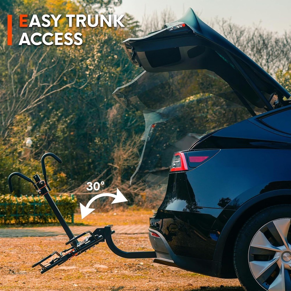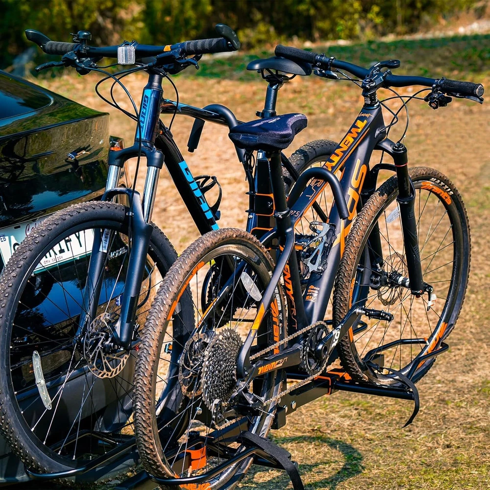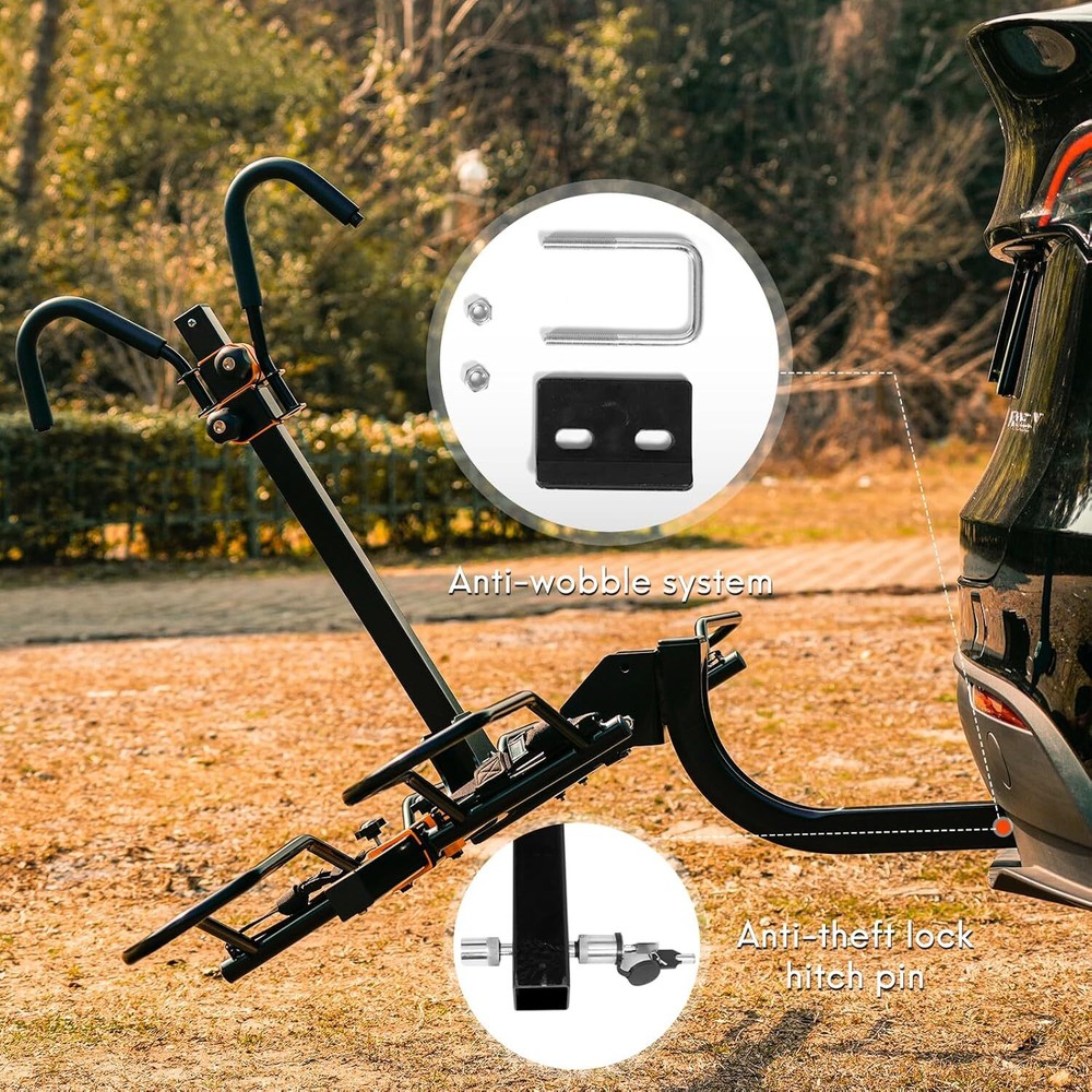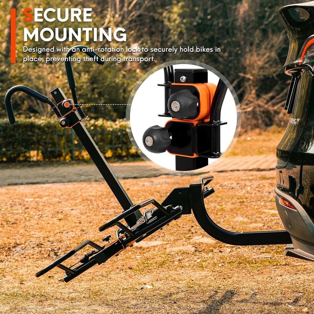 Brand Soarify Item dimensions L x W x H 30.12 x 62.03 x 35.62 inches Load Capacity 140 POUNDS Mounting Type HITCH MOUNT Manufacturer SOARIFY Vehicle Service Type Car Material Alloy Steel Item Weight 34 Pounds Is Foldable Yes About this item đ´ăHEAVY-DUTY CONSTURCTIONă: Built with high-strength alloy steel to support up to 140 lbs, accommodating two bikes of various sizes and types, including eBikes, mountain bikes, and road bikes. đ´ăEASY ASSEMBLY & INSTALLATIONă: Simple assembly with minimal tools required. The rack can be installed and removed quickly and effortlessly. Compatible with standard 2-inch hitch receivers, fitting most cars, SUVs, and trucks. đ´ăTILT-DOWN FEATUREă: Convenient tilt-down mechanism allows for easy access to the rear of the vehicle without removing the bikes. đ´ăANTI-THEFT ROATATION LOCKă: Features a robust anti-theft rotation lock system that prevents unauthorized removal and enhances security. đ´ăFOLDABLE DESIGNă: When not in use, the rack folds up neatly against the vehicle to save space and avoid interference.
