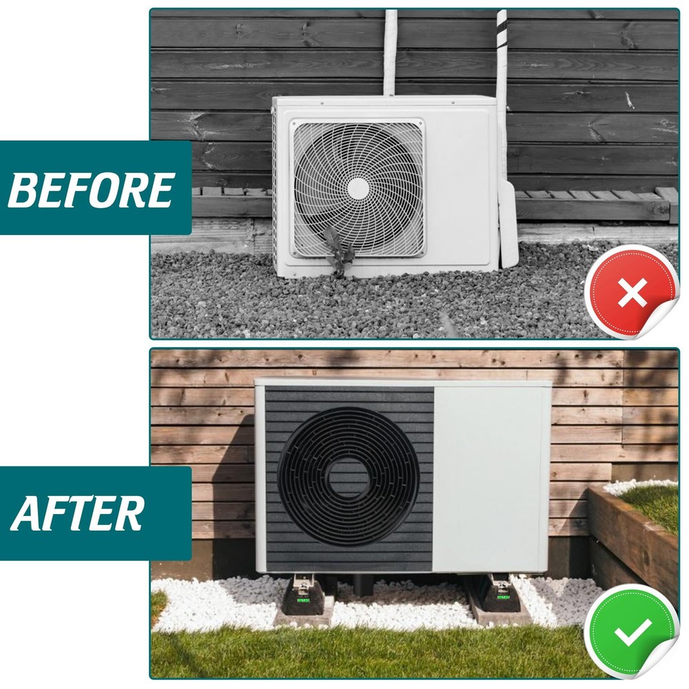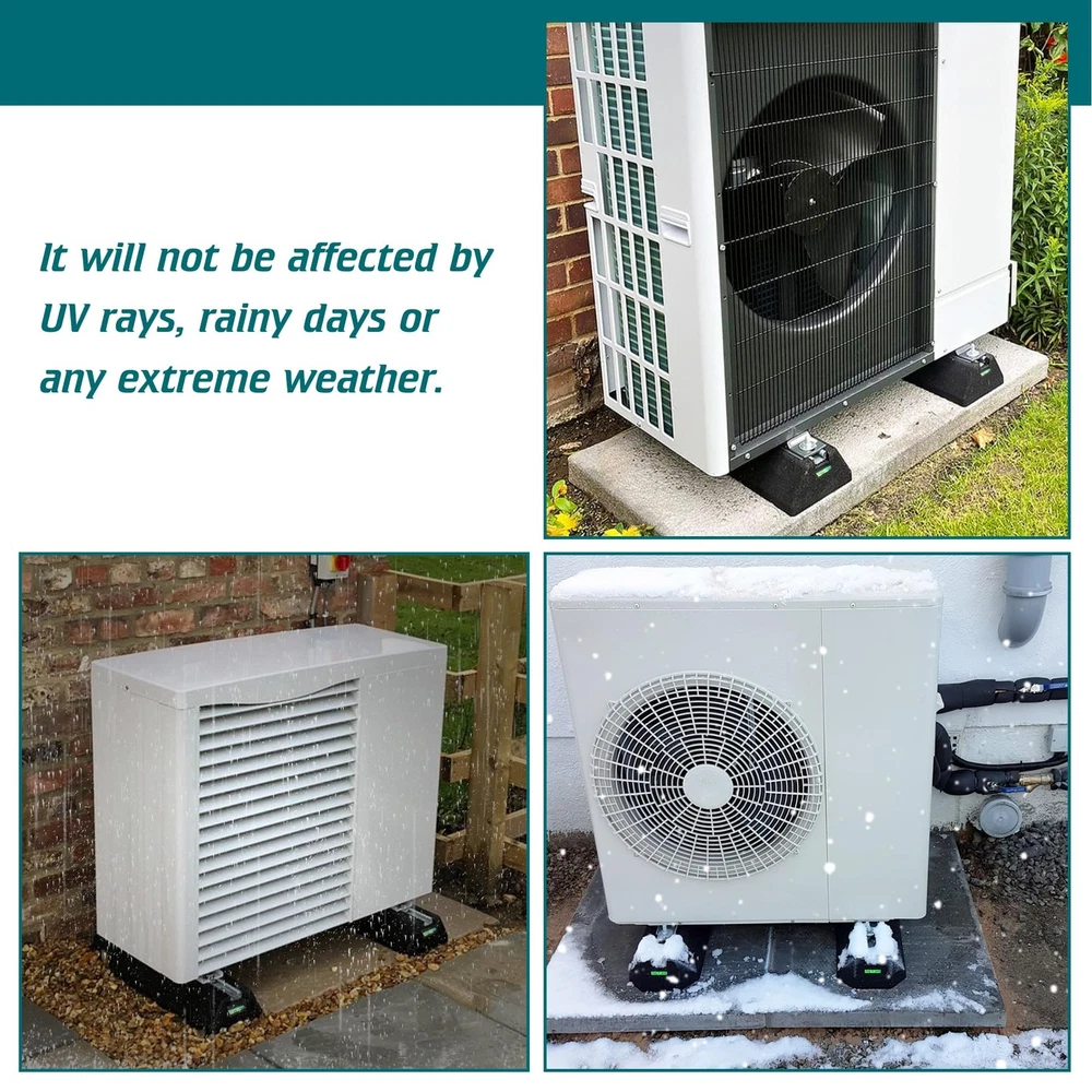 Floor Mounting Base Kit for Mini Split Air Conditioners Condensers Heat Pump System,Anti-Vibration Shock Absorbing Rubber Mounting Ground Stand.Support Up to 1100 lbs,9,000-36,000 BTU.anti-vibration pads made of strong rubber,provide sturdy support for air conditioner,perfect fixing and damping effect under heavy pressure to bear.These anti-vibration pads for mini split,help minimizes vibrations.revent the movement of the air conditioning unit, keeping it in a stable position [UNIVERSAL DESIGN]:Mini Split Air Conditioner Pad suitable for most brand outdoor Ductless Mini Split Air Conditioner Condenser,Heat Pump System,Cooling Only unit.supports up to 1100 pounds for all 2 pcs [DURABLE MATERIAL]:Our anti-vibration pads made of strong rubber,provide sturdy support for air conditioner,perfect fixing and damping effect under heavy pressure to bear.it works more efficient than other all through rubber pads [PROTECT EQUIPMENT]:Reduce structural damage caused by vibration and noise,prolong your equipment life [STABLE MOUNTING PAD]: These anti-vibration pads for mini split,help minimizes vibrations.revent the movement of the air conditioning unit, keeping it in a stable position 【DIMENSIONS】 17 -1/4" x 5" x 2-1/2'' for each base,can be directly installed in concrete or equipment pad.built-in leveler to ensure perfectly horizontal mounting