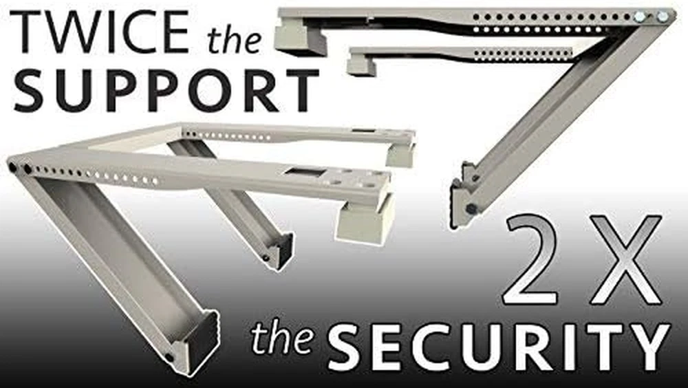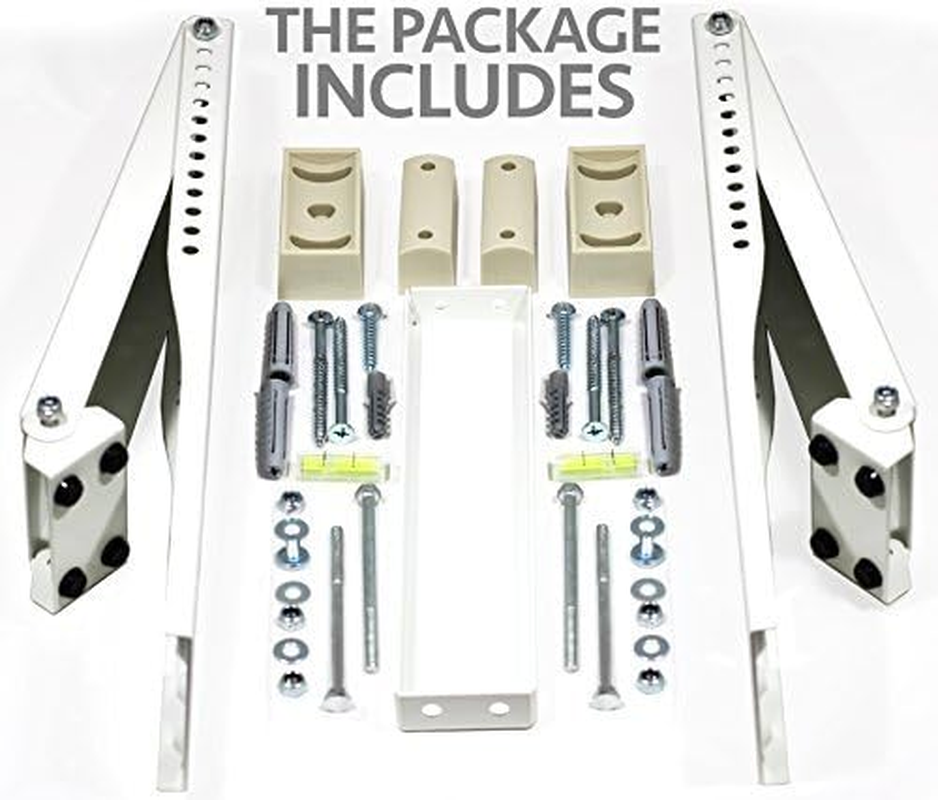 The window AC bracket adapts to any window style, with a wall thickness from 3" to 12" and fits window openings 16" or larger. Drilling Is required. All Weather Steel Construction & Easy Indoor Installation - Our bracket support eliminates exterior work with no drilling of outside wall or siding, but DRILLING into the window sill is still required. Safe, Durable & Convenient - Dual AC brackets relieves stress on the window and allows for maximum sturdiness and weight allowance (200lbs) All necessary Air Conditioner mounting bracket hardware included & Works With All Brand Name Air Conditioners Including: Aros, Casement, Fridgidare, Frost King, SPT, Koldfront, Arctic King, GE, Kenmore, LG and many more. Indoor Installation - Install easily from indoors without having any exterior work, just drilling into window sill. Product Description Alpine Hardware offers 3 types of Window AC Brackets. There are 2 Different Models of Window AC Brackets that require drilling where the difference is 1 arm of support or 2 arms of support. Both the one arm and two arm models have a light/medium duty and heavy duty size. For a further look at the sizes, look down below. We offer 1 type of Window AC Bracket that is Drill-Less and does not need to be drilled into the window sill. What's needed for this to work? The window AC bracket adapts to most window styles, and will work with a wall thickness from 3" to 12". Do I need to drill for this model? Alpine Hardware's ac brackets are all weather steel construction with an easy indoor installation. Our window support brackets eliminates exterior work with no drilling of outside wall or siding. Our one arm and two arm models require DRILLING into the WINDOW SILL . The Drill-Less Model does not require drilling into the Window Sill. See below for further specs. These 4 Options Need Drilled into the Window Sill Light/Med Duty 1 Arm This supports up to 85lbs and is a light/medium duty 1 arm bracket. Heavy Duty 1 Arm This supports up to 160lbs and is a heavy duty 1 arm bracket. Light/Med Duty 2 Arm This supports up to 105 lbs and is a light duty 2 arm bracket. Heavy Duty 2 Arm This supports up to 180lbs and is a heavy duty 2 arm bracket. Drill-Less Support Option This supports well over 200lbs and is a heavy duty bracket that is Drill-Less. This means it does not need drilled into the window sill.