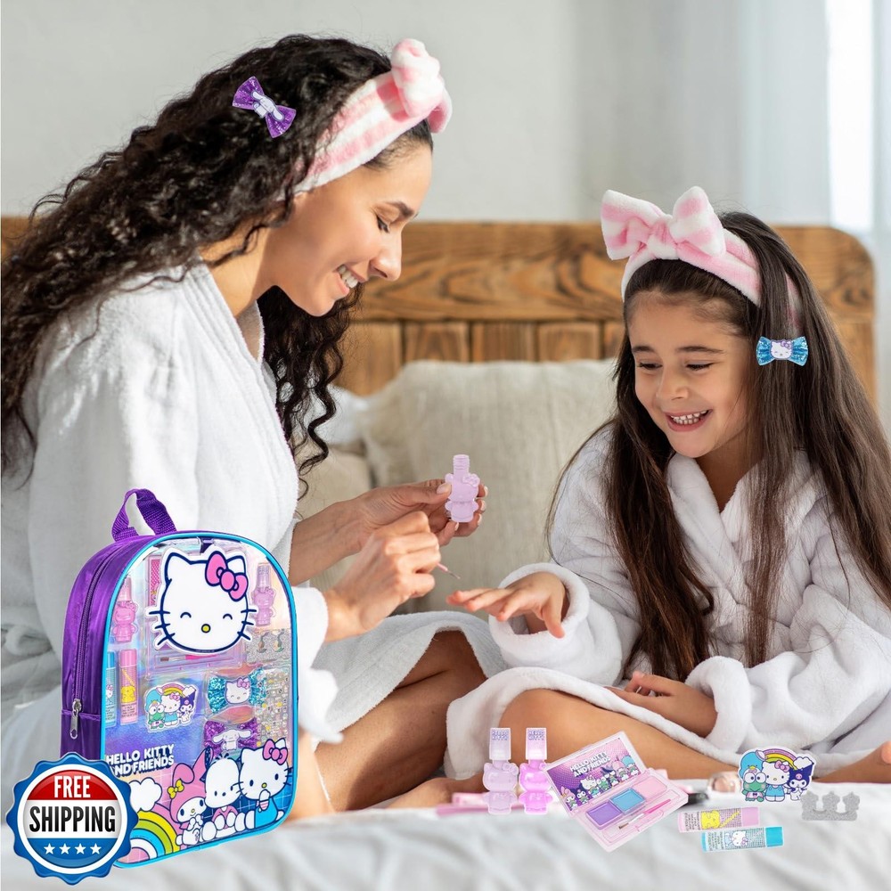 Hello Kitty and Friends- Townley Girl Makeup Filled Backpack Set with 12 Pieces, Including Lip Gloss, Nail Polish, Nail Stones and Other Accessories, Ages 3+ for Parties, Sleepovers and Makeovers Features SET INCLUDES: Assortment of 2 bubble gum scented nail polishes, 2 lip balms that are strawberry and blueberry flavored, 1 toe spacer, 2 glittery hair bows, 1 3-well, cotton candy flavored lip gloss compact, 1 sheet of nail stickers and 1 nail file all packed in a fun, reusable, Hello Kitty and Friends backpack. SAFE FOR CHILDREN 3 AND UP: Our non-toxic, water-based and bubble gum scented nail polish formula makes them safe for your young ones. Our lip glosses are non-toxic and water-based as well. They are non-mess as they wash out with water! POLISH REMOVER NOT NEEDED: Simply peel off dried polish to remove it from nails. No need to expose your child to harmful vapors and chemicals that are in standard nail polish removers. UNLEASH HER CREATIVITY This amazing makeover set contains everything she will need to create a dazzling beauty look. With multiple polish colors and nail stickers, lip glosses and more, she'll have so much fun glamming up. And the best part is she can take all of these beauty essentials with her on the go by storing them in her new backpack! MORE FUN FOR EVERYONE: This ultimate makeover set is the perfect activity that she can share with her friends at sleepovers, makeup parties, birthday parties and more! Shipping Free & Fast Shipping: We offer free shipping to most of the USA with a normal delivery time of 3-7 days. However, due to the current situation, additional delivery time (up to 3 weeks) may be required for some items. Alternative Carriers: We may use alternative carriers (e.g., USPS, FedEx, UPS) to ensure your package arrives safely and on time. Due to the use of multiple carriers, we are unable to provide a tracking number automatically. Handling Time: Orders are processed and shipped within 1-2 business days of receiving cleared payment. Shipping Restrictions: Shipping to Alaska, Hawaii, Puerto Rico, Guam, and other US territories may incur shipping charges or delivery restrictions. Please contact us before ordering, or your order can be refunded/cancelled. State Restrictions: Certain items may not be shipped to California due to state regulations. Contact for Tracking Updates: If you require tracking updates or have any concerns about the delivery of your order, please feel free to contact us, and we will be happy to assist you. Return Policy 30-Day Hassle-Free Returns: If you are not completely satisfied with your purchase, you can return the item for free within 30 days of receiving it for a full refund or exchange. Easy Return Process: Contact us, and we will provide you with a prepaid return shipping label and detailed instructions. No Restocking Fee: There are no restocking fees for returns. However, the buyer is responsible for return shipping costs if the return is not due to a seller"s error. Refund Processing: Refunds will be processed within 1 business day of receiving the returned item in its original condition. Feedback Your feedback is extremely important to us. We strive to provide the best products and customer service possible. If you are satisfied with your purchase, please take a moment to leave us a positive review. If you have any concerns or issues with your order, please contact us before leaving negative feedback. We are committed to resolving any problems and ensuring your satisfaction. Contact Us If you have any questions or concerns, please feel free to reach out to our customer support team. You can contact us through the eBay messaging system. We are available Monday to Friday, 9:00 am to 5:00 pm EST, and we will do our best to respond to your inquiry within 24 hours. Thank you for supporting our small family business!