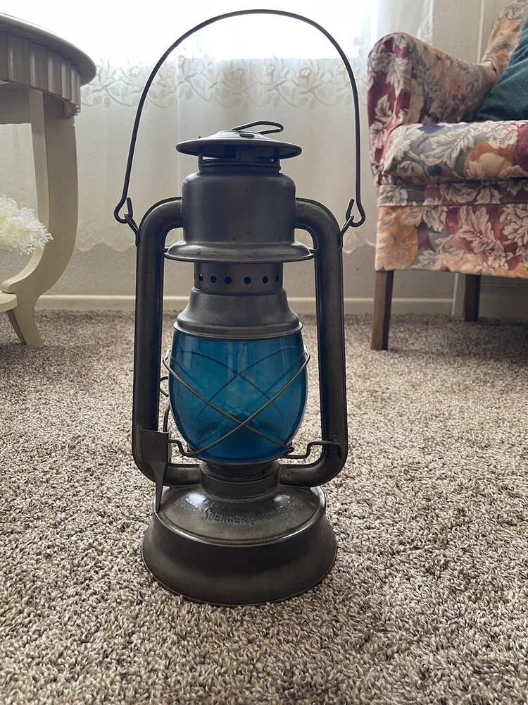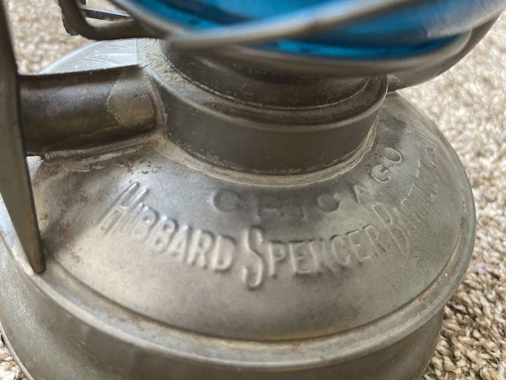 From our own family’s collection! HIBBARD SPENCER BARTLETT & CO CHICAGO OVB #2 TUBULAR LAMP BARN LANTERN This is our lovely antique lantern marked HIBBARD, SPENCER, BARTLETT & Co., No. 2 OVB in Very Good condition with minimal rust. Very surface stuff, nothing serious It has a super unique TEAL colored globe, which is marked MCK GC0. The metal base is marked No. 2, O.V.B. on one side & marked Chicago, Hibbard, Spencer, Bartlett & Co. The wick is included. We did make great efforts to upload clear pictures. Please, please, PLEASE inspect all of the pictures & ask all of the questions that you may have prior to making a purchase. For example, if you can’t quite tell the condition from the pictures, then please ask the appropriate questions. All of that being said, please don’t hesitate to reach out to us for anything, such as extra pics. Thank you for looking & look out for more to come! We’re also happy to combine shipping & your item will be very well packed for its journey to you. Smoke-Free Home!