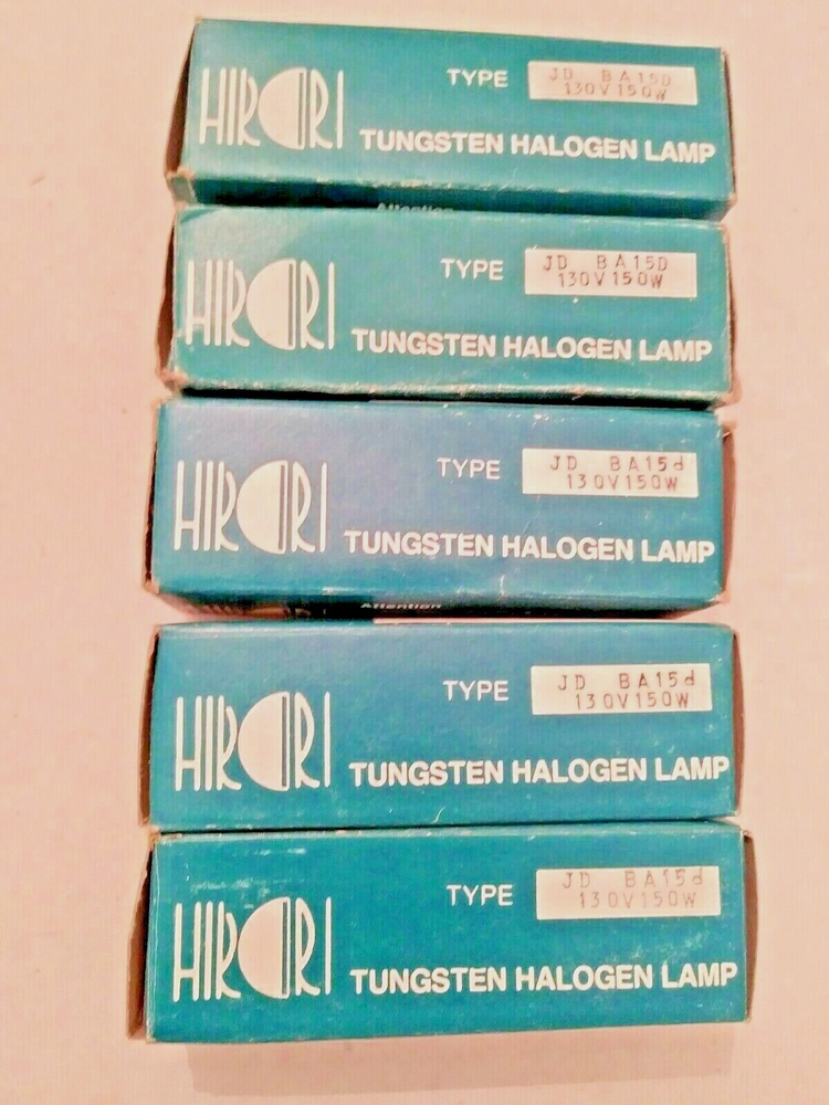 These are Set of 5- Abco Tungsten Lamp Light Bulbs. HIRARI TYPE- -JD B A15d 130V/ 150W.. ITEM- 04847. New old stock. Not tested.