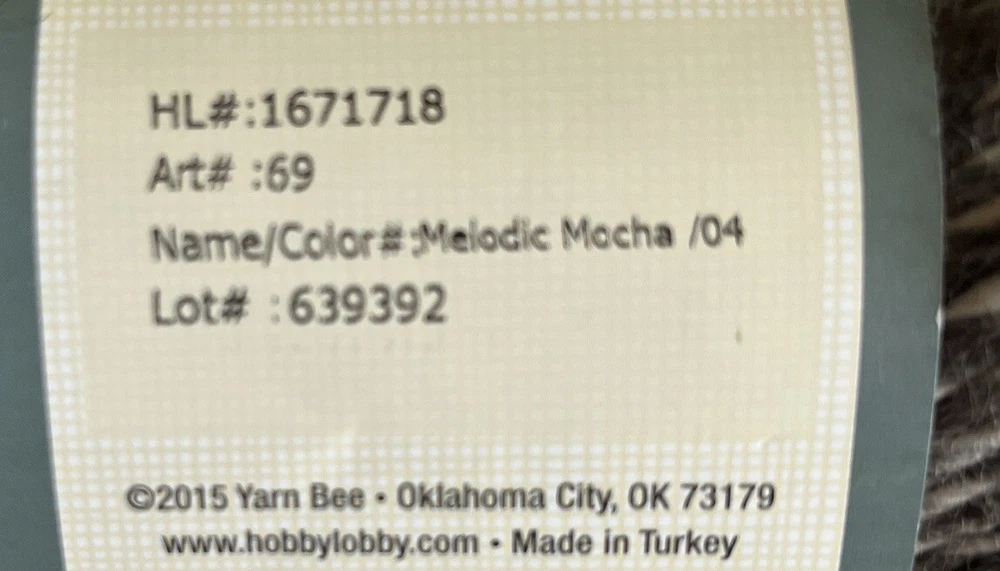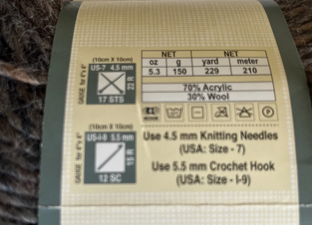 Yarn Bee Fireplace Comfort Yarn in MELODIC MOCHA NEW, DISCONTINUED 5.3oz/150g, 229yds/210m 70% acrylic/30%wool Weight 4 Machine washable, see label From a SMOKE FREE home with no shedding pets. Thanks for looking. Have a blessed day!