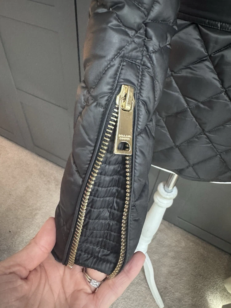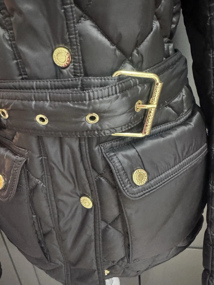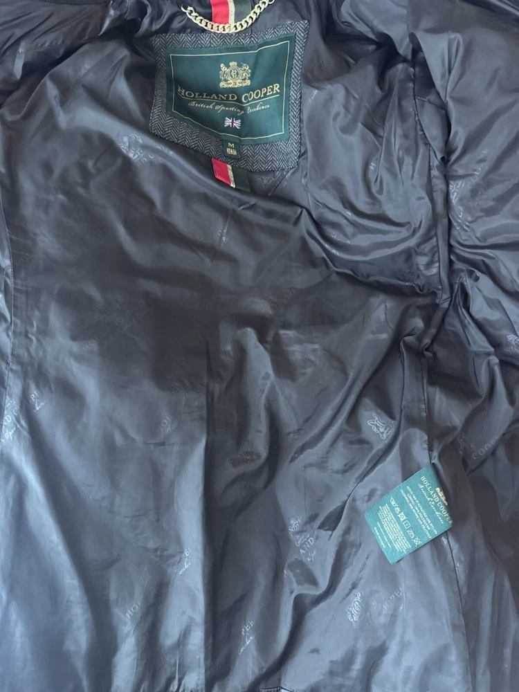Holland Cooper Jacket Excellent condition, hardly worn, black but it reflects the light so can look a bit charcoaly in my opinion Size M, fits a 10 nicely Shown on a size 8 mannequin but pegged to fit