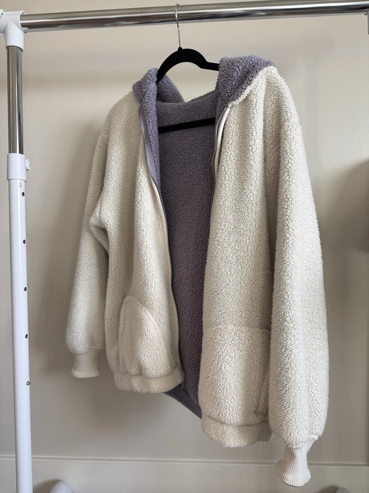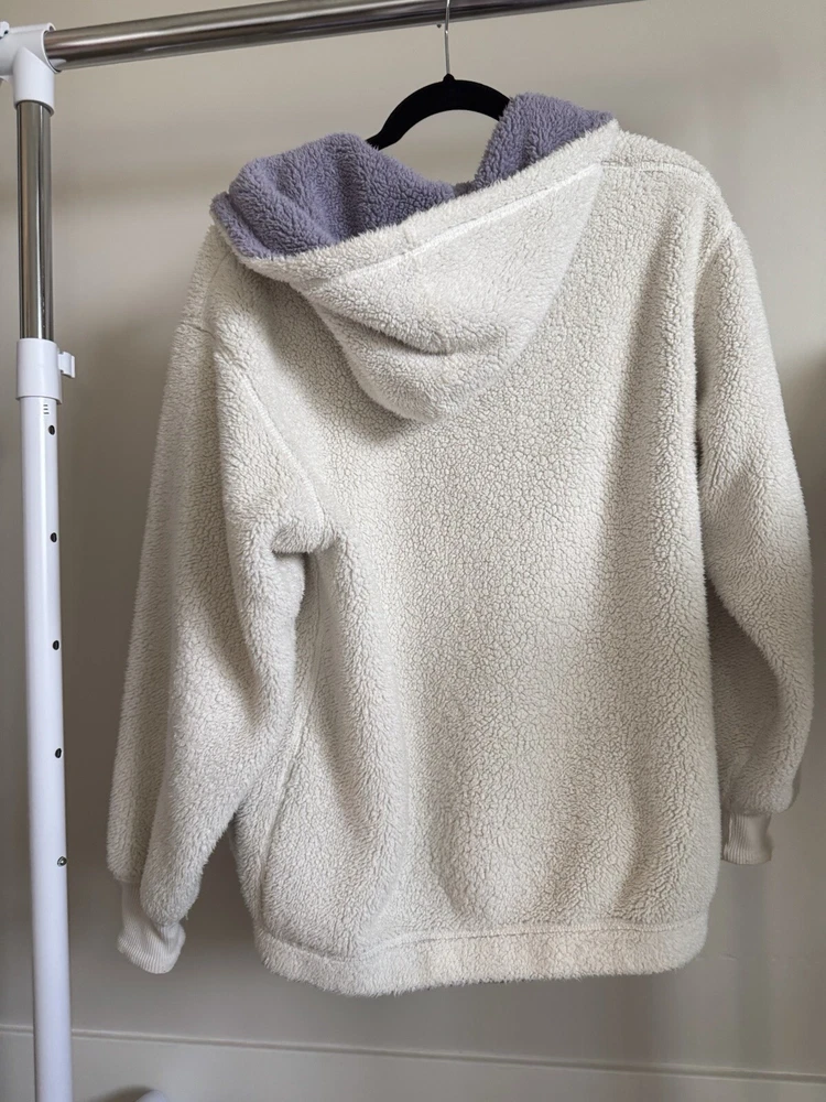 Hollister Sherpa Fleece Reversible Hoodie - Cream & Lavender - Size XS