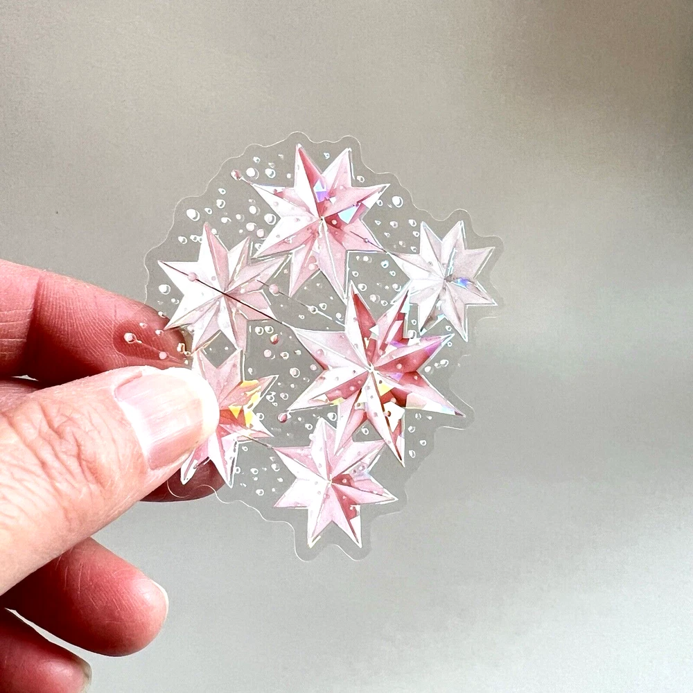 These are very pretty flake stickers. Holographic details. Slightly raised ink in areas to add dimensional effect. 10 stickers. The sticker in the last photo is approx. 2 3/4 x 2 1/4 inches. These are PET (thin clear plastic) stickers with a clear peel off backing. I have more stickers, washi tape and paper for sale. I do combine shipping. Please put all the items you want to purchase in ONE cart and then pay. I will refund you the difference in shipping after shipping label is printed. Let me know if you have any questions through eBay messaging. Thank you for stopping by!