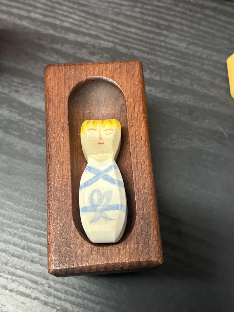 Holztiger Handcrafted Wooden Nativity Set Of 3 Small Jesus pre-owned is in very good condition