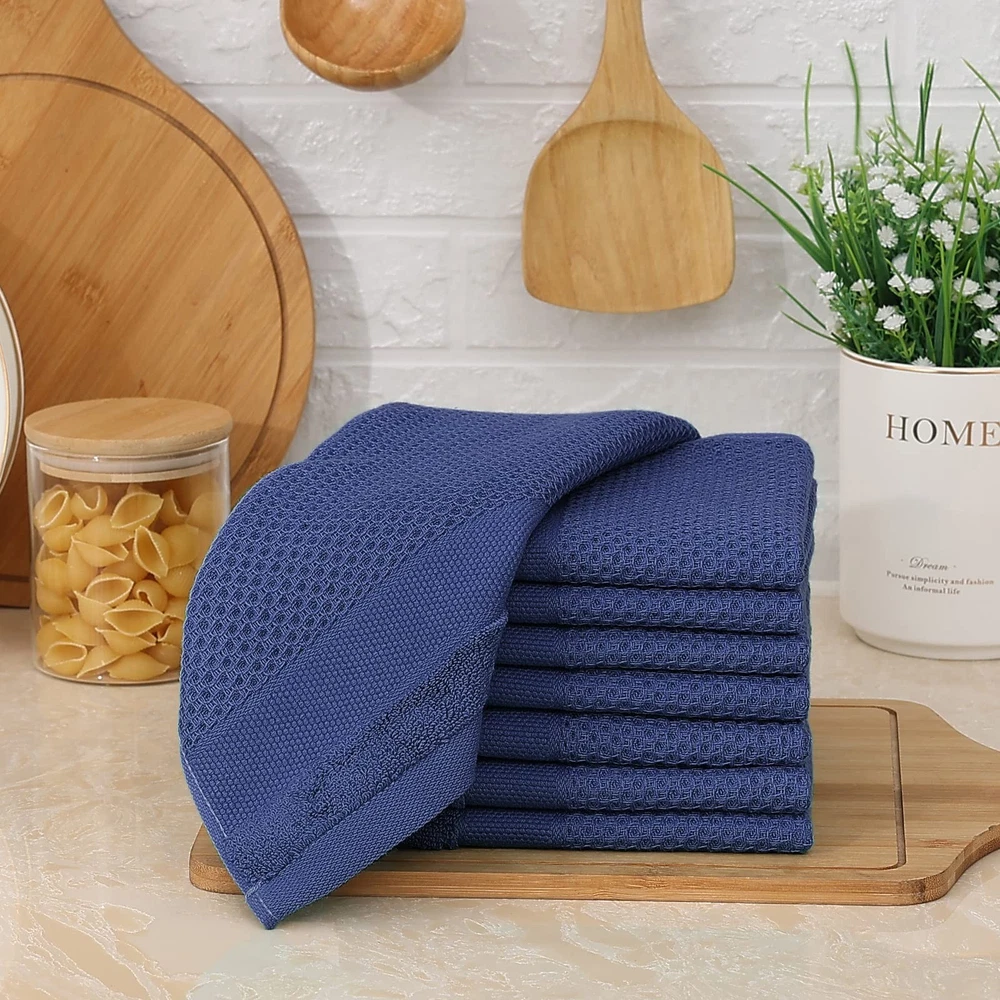 About our products: Our products are dedicated to giving our customers the best experience and being the best assistant in your kitchen. By understanding your family and lifestyle, we're able to match the proper kitchen products, giving our customers a wide choice of colors and styles to ensure maximum happiness for your family and friends! Are you still worried about the presents for Mother's Day, holidays, housewarming, and hostess? Try our products, they will be a good choice for you. Why choose our dish towels? Our products have the following characteristics: - The soft surface feels comfortable and does not scratch any delicate surfaces. - Honeycomb design is more practical and has more advantages. - High absorption that helps quickly clean the dishes or wipe the spills. - High durability and can withstand multiple washes. - Lightweight and compact, it can be quickly dried to prevent odors. - Machine wash and dry for easy care. - The dish towel is still the original size after drying in a variety of colors, perfect decoration for your kitchen. - 12 x 12 inches and 13 x 28 inches for your everyday needs in the kitchen. - Available at an affordable price. Care instructions to increase the life of the product: - Do not use bleach or fabric softeners, as this will affect the longevity and absorbency of the towels. - Naturally dry or low-temperature drying. - Do not use these towels on hot surfaces, otherwise, high temperatures will damage the fibers above. COTTON KITCHEN TOWELS: 100% cotton waffle weave dish towels that feel soft and comfortable. Unique honeycombs design makes it more sturdy, and soften with every washing, so these dish towels won't scratch your delicate cookware, plates and pans. UNIQUE DESIGN: The classic hollow honeycomb weave makes this set of dishcloths lightweight, breathable, and super absorbent, suitable for all your drying, wiping, and kitchen tasks. EASY CARE: In order to minimize shrinkage, please machine wash with cold water, gentle cycle, tumble dry low. Do not use bleach or fabric softeners as this will affect the longevity and absorbency of the towels. Low iron if needed. VALUE PACK: Collection includes 8 solid color cotton kitchen towels available in a variety of colors to coordinate with any kitchen décor. Measures 12 in x 12 in. BEST PRESENT CHOICE: soft, functional and ultra-absorbent dish towels are a substitute for paper towels. It is also suitable for Mother's Day, holidays, family warmth and hostess presents.