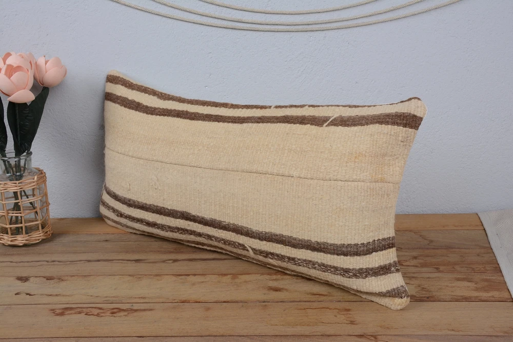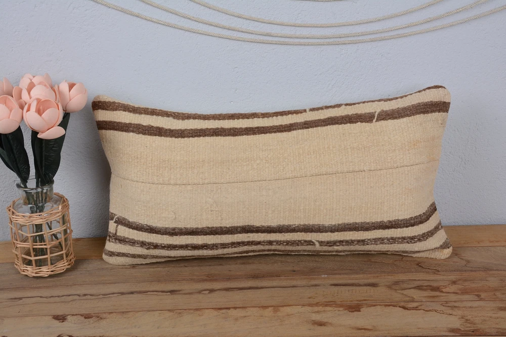 Home Decor Pillow, Kilim Pillow, Body Pillow, 12"x24" Beige Cushion Case