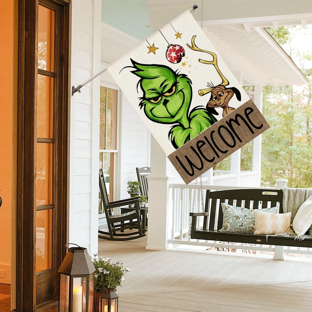 Christmas Garden Flag PACKAGE : ONLY 1PC Patriotic GARDEN FLAG (Flag holder sold separately). It is small, mini Garden size (28 x 40"), sleeve hanger fits most standard Flag Stand. HOME DECOR: Welcome guests to your home with this unique, seasonal flag. Perfect for any deck, patio, porch or and make charming decorative statements for any backyard, lawn or garden. DURABLE AND HIGHER QUALITY: Made of machine washable Spun Polyester which is durable and weather resistant. Double stitching panels on multiple rows and high quality sleeve to provide lasting strength. FEATURES: Sleeve hanger fits standard Banner/Flagpole, Bracket, Arbors or stand. Flag pole NOT included. Material: 100% Linen.seasons. EASY TO INSTALL AND MACHINE WASHABLE: All flags feature a sleeve at top for use with any standard flag pole or stand, easily slip the flags through the holes on either of the top sides to hang them on your garden flag stand.