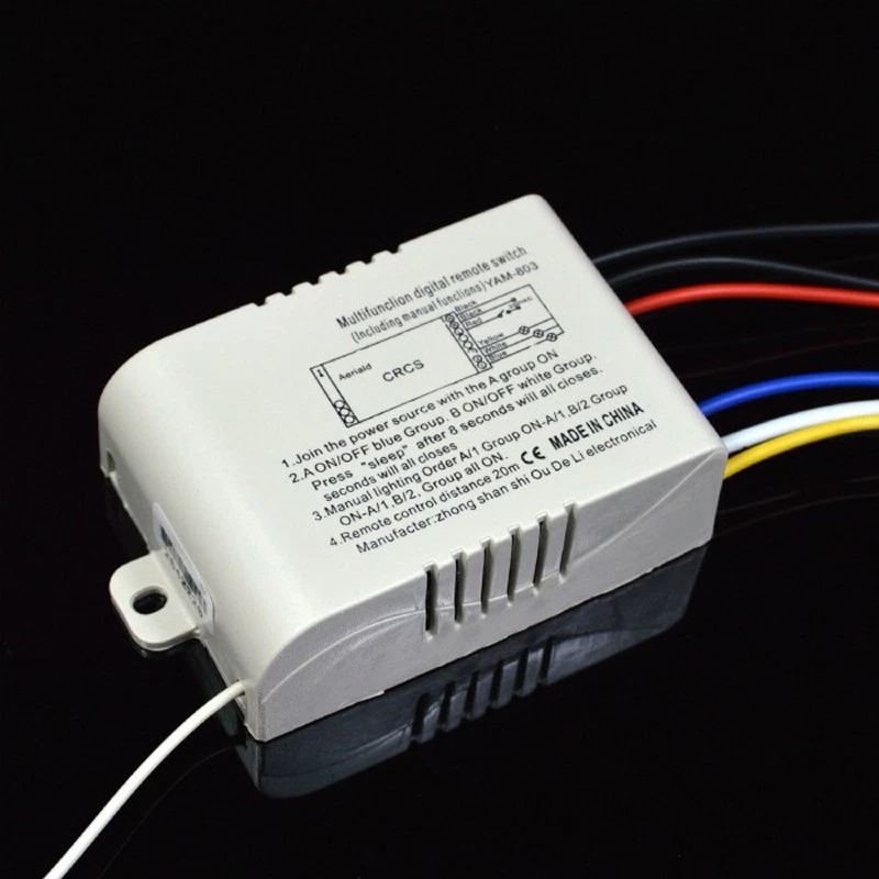 Product Description Features: * Way Remote Control Switch *Perfect for remote controlling of droplight, for Crystal lamp, modern low-pressure lamp, absorb dome light, day flower lamp, fluorescent lamp, energy-saving lamps, exhaust fan, light etc *Fast and easy installation, not obstructed by walls, capable of connecting any loads *Remote control and switch can be used simultaneously for ease and flexibility *Every set of remote controlling switch has its special . More sets can be used in room without interference Specifications: *Input voltage: AC 200-265V *Every port load: Fluorescent lamp: 1000W Energy-saving lamp: 150W : 65W *Working temperature: -30degree Celsius~+60degree Celsius *Material: ABS *Remote controlling distance: within 30m *Power supply: 12V 23A battery(not included) *Transmitter dimension: 10.4*4.5*1.5 cm/ 4.09*1.77*0.59 inch(Approx) *Receiver dimension: 6.0*4.5*2.6 cm/2.36*1.77*1.02 inch(Approx) Two Way Remote Control Switch Function: *A/1 will light after power on *A/1 uses to turn on /off the blue group, B/2 uses to turn on /off the green group, ''ON"/"OFF" means turn on/off the whole item *Manual lighting (wall switch control): A / 1 , B / 2 ,the whole circuit will be turned on Specifications: *Input voltage: AC 200-245V(50/60Hz) *Every port load: Fluorescent lamp: 800W Energy-saving lamp: 150W : 65W *Working temperature: -30degree Celsius~+60degree Celsius *Material: ABS *Remote controlling distance: within 30m *Power supply: 12V 23A battery(not included) *Transmitter dimension: 10.5*4.3*1.7 cm/ 4.13*1.69*0.59 inch(Approx) *Receiver dimension: 9.1*4.5*2.5 cm/3.58*1.77*0.98 inch(Approx) Three Way Remote Control Switch Function: *A/1 will light after power on *A/1 uses to turn on /off the blue group, B/2 uses to turn on /off the green group, ''ON"/"OFF" means turn on/off the whole item *Manual lighting (wall switch control): A / 1 , B / 2 ,the whole circuit will be turned on Specifications: *Input voltage: AC200V-240V 50Hz/60Hz *Every port load: Fluorescent lamp:600W Energy-saving lamp: 150W : 65W *Working temperature: -30degree Celsius~+60degree Celsius *Material: ABS *Remote controlling distance: within 30m *Power supply: 12V 23A battery(not included) *Transmitter dimension: 10.4*4.5*1.6 cm/ 4.09*1.77*0.63 inch(Approx) *Receiver dimension: 7.5*5.2*2.6 cm/2.95*2.05*1.02 inch(Approx) Package Contents: 1 x Remote Control Receiver 1 x Remote Control Transmitter Note: The real color of the item may be slightly different from the pictures shown on website caused by many factors such as brightness of your monitor and light brightness. Payment Payment must be completed within 5 days. If you have any problems about payment, please contact us via ebay message. Delivery details We only ship to confirmed ebay Order addresses. Please comfirm that your Order address is in line with your shipping address. Please kindly note that the c ombined shipping is not provided because the shipping fee is calculated by weight. Also, the each additional item means exactly the the same color and size. It takes about 7 -15 working days to US; about 10-30 working days to other countries. Transit time may be a little delayed because of the bad weather and customs inspection . If you do not receive your item within 30 working days since payment finished, please contact us immediately for further assistance. Contact us We strive for 100% customer satisfaction! Positive Feedback is very important to us. If you have any questions, p lease feel free to contact us via "Ask seller a question" . We will reply your email within 24 working hours.