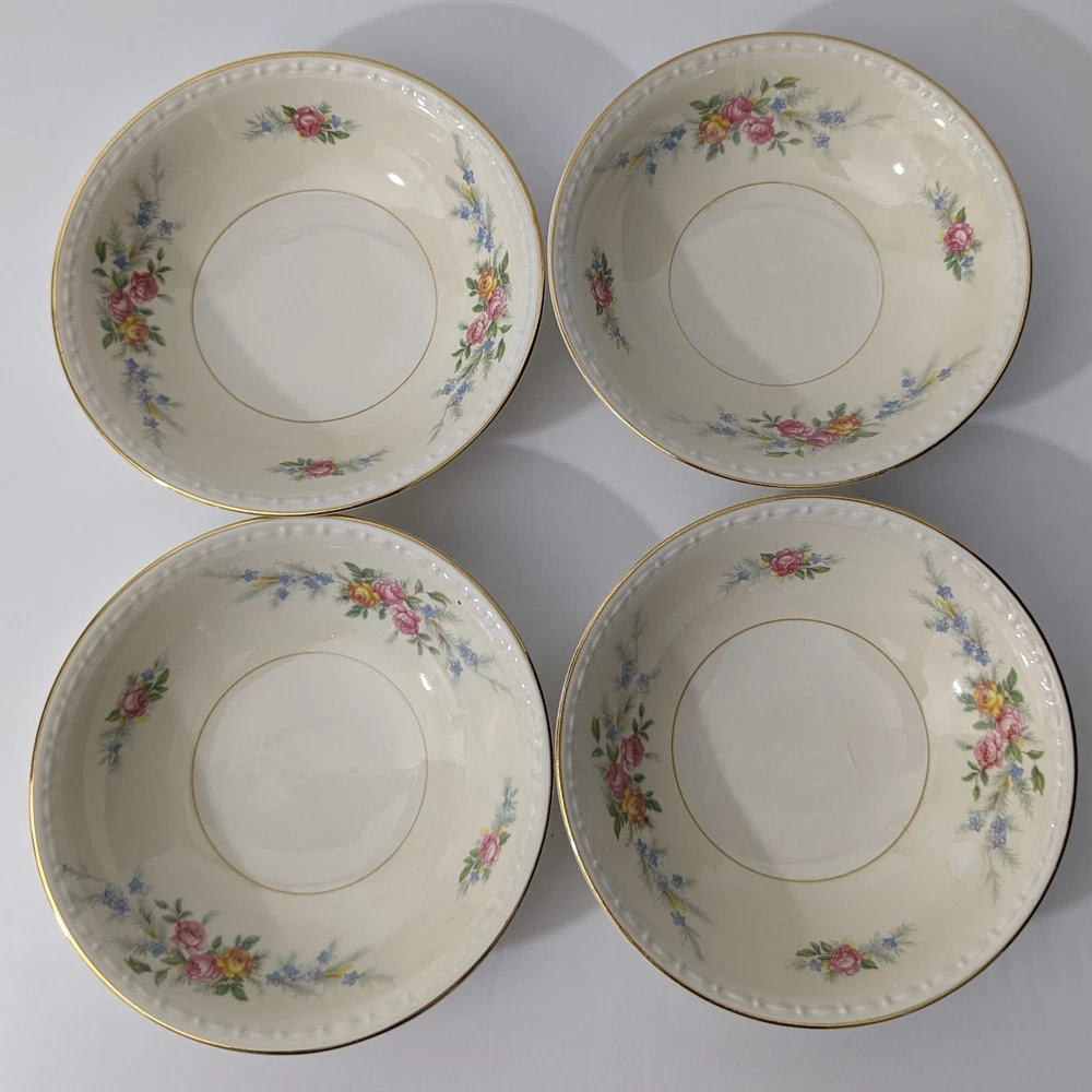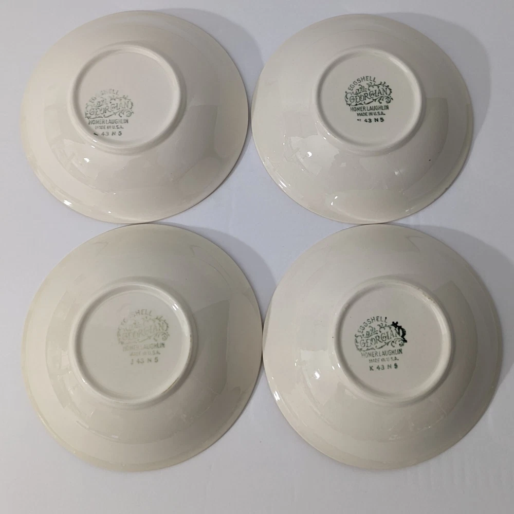 Homer Laughlin Ferndale Fruit Sauce Dessert Bowl 1943 Eggshell SET OF 4 - Lot 2 Good condition - may contain some crazing - no chips or cracks - see photos The last bowl has a scratch inside-see the last photo Bowls will ship USPS Priority Mail. I have several other pieces from this set. See my ebay store and view the category DISHES>HOMER LAUGHLIN