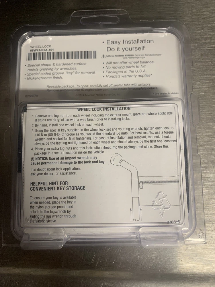 Secure your wheels with Honda Genuine Parts 08W42-S2A-101 Black Wheel Lock Set. This set includes four wheel locks and a key for added security. The black color complements any wheel design and adds a sleek look to your vehicle. These OE/OEM Part Number 08W42-S2A-101 Wheel Locks fit perfectly on your Honda and come in a pack of four. The package includes a key making installation and removal an easy task. Protect your wheels in style and ensure the safety of your vehicle.