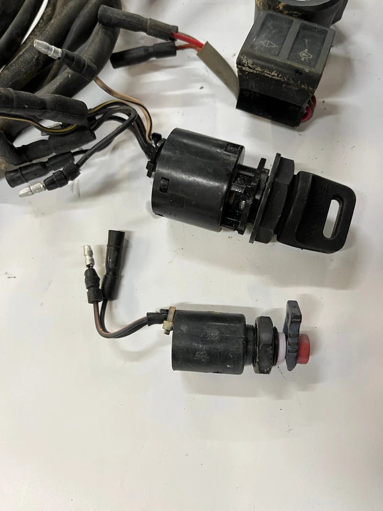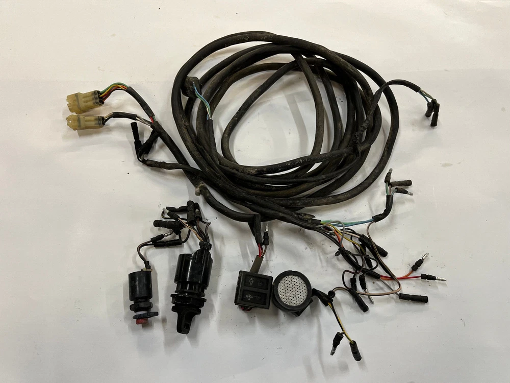 good used uncut harness with all the switches, alarm and lanyard safety post. 15 feet parts removed from a 2004 honda bf 15 electric start power tilt engine balj i myself disassemble skis, inspect parts, take the pictures and list the parts. we live and breath watercraft and run a reputable repair business for 16 years we do not clean most item and list in a way not to deceive the buyer have tons of parts, just ask i might have please if you agree to the terms and prices, INCLUDING SHIPPING PRICES, leave good rating and feedback check out my other auctions if not sure about fitment, email me your model and year of your machine and i will look it up if you have a problem with your purchase please contact me first to try to resolve issue IF YOU ARE PLEASED WITH PURCHASE, PLEASE LEAVE GOOD FEEDBACK AND RATING AS I WILL DO FOR YOU. DO NOT USE OUR PARTS FOR DIAGNOSTIC REASONS AND THEN ATTEMPT TO RETURN THEM. we will combine shipping
