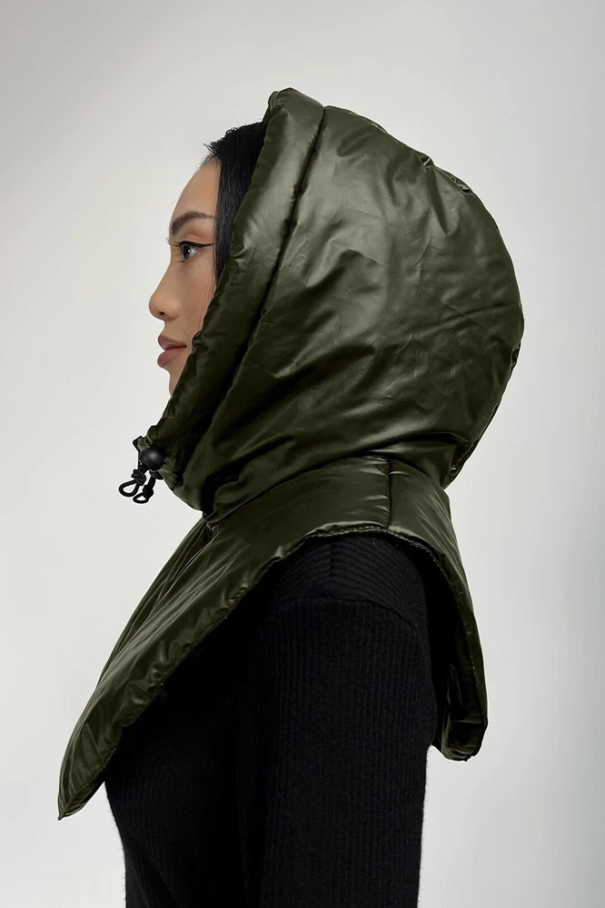 Waterproof hooded scarf, Rainproof hooded cowl, Black hood cowl, Neck Warmer, Womens hooded scarf, Outdoors gift , Trending Now Fabric: quilted raincoat on silicone Insulation - silicone (200 g/m2) Composition: 100% polyester Color: black, white, khaki Size: UNI (Universal) The removable hood is made of jacket fabric with silicone insulation. The hood on silicone - protects the head from wind, cold, and rain, keeping warmth and comfort. The sleeve of the removable hood, which insulates, lies gently on the shoulders and protects the chest and back from the cold. The hood is adjustable along the edge with an elastic band with a fastener. For ease of putting on, a zipper is provided. This headdress in universal colors is combined with various outerwear: jackets, down jackets, coats, sheepskin coats, and fur coats. A separate hood is an original and relevant accessory this season, which will replace your scarf and hat at the same time! I did my best and send my beautiful Wool Balaclava Hat to the Fulfillment center in USA to minimize shipping time for you. Now shipping time will take about 3-5 business days among USA and about 7-10 business days to Canada