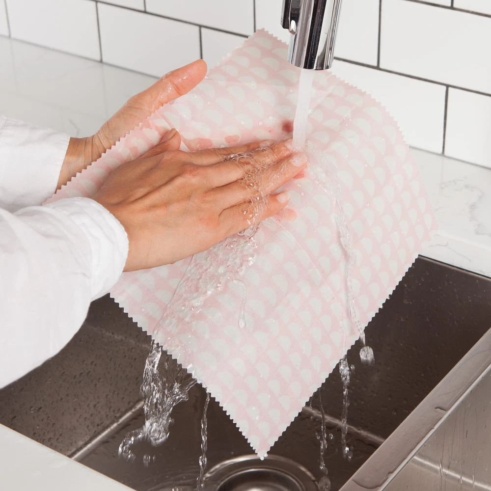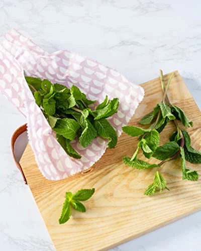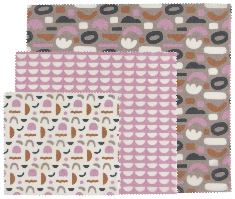Make unwrapping your lunch a pleasure with this soft pink Horizon patterned reusable wraps. Say goodbye to single-use plastic wrap with our beeswax coated cotton wraps. Pack lunch, keep cheese and leftovers in this reusable wrap. It protects food effectively but also lets it breathe, resulting in fresher food for longer. Reuse again and again for a year or more. Use these wraps to wrap leftover food and snacks on the go. 3 different sizes will give you options for covering all types of food containers. The set of 3 includes a small 7 x 8 inch wrap, a medium 10 x 11 inch wrap and a large 13.7 x 13 inch wrap. After use, simple wash gently in cool water and lay flat to dry. Do not use hot water. These dry quickly for use again and again, and are 100% biodegradable. At Ecologie sustainable alternatives bring thoughtful beauty to the home. Plastic-free and eco-friendly reusable beeswax food wraps are zero waste, 100% compostable and safe for the environment. Made with natural products these beeswax wraps are non-and help to reduce waste. A sustainable alternative to single use plastic wrap Soft shapes and shades of pink make this design enjoyable to wrap up a lunchtime snack for yourself or someone special. Each design is created to enhance your life with beautiful design and bring colors and patterns that are vibrant and fun Ecologie Beeswax wraps are food friendly and made with all natural materials. Cotton coated with beeswax, coconut oil and tree resin these wraps seal tightly and keep food fresh longer. Durable and longlasting Ecologie wraps seal or wrap tightly with the warmth of your hand. To clean rinse under cold water with a mild soap and lay flat to air dry. After 1 year of use put in your compost bin. A collection inspired by a commitment to both sustainability and good design. Eco-friendly materials in a bounty of prints and colors bring thoughtful beauty to the home.