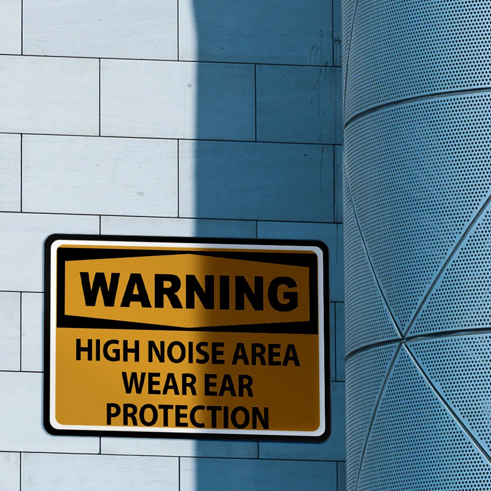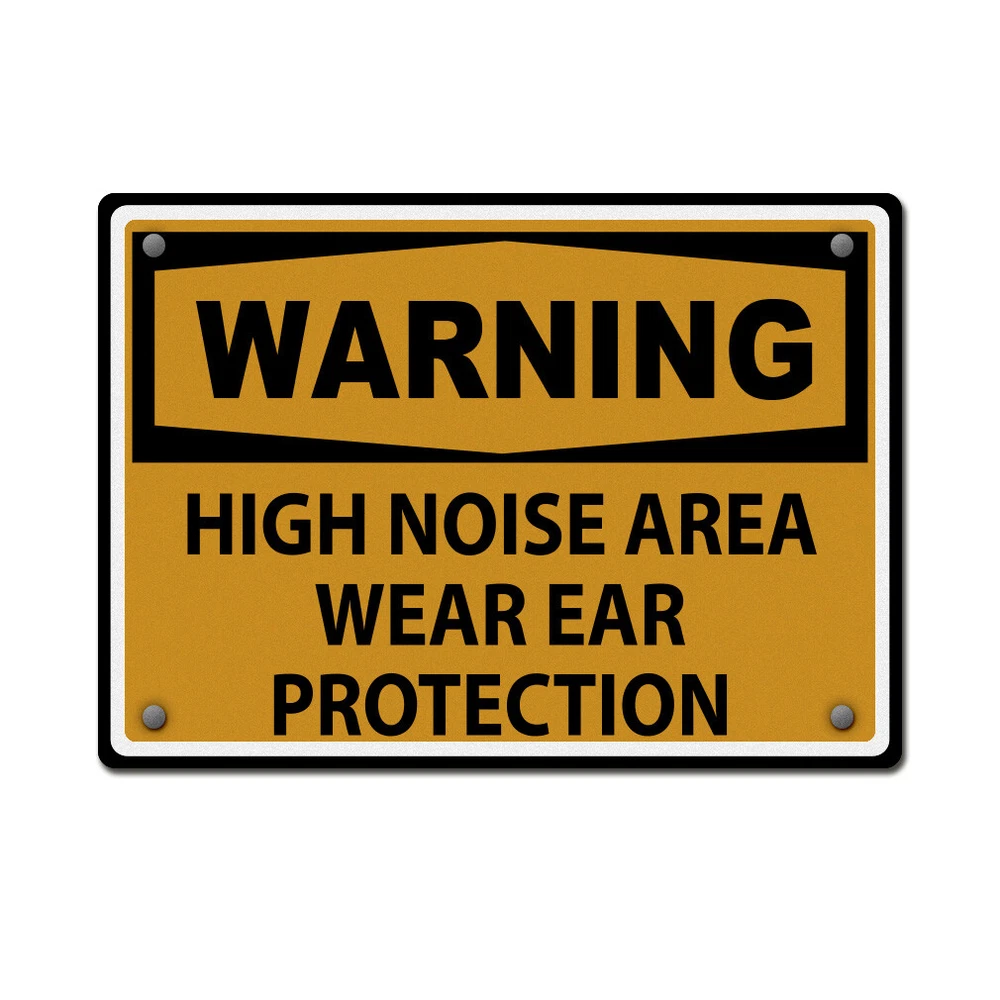 Signs Outdoor/Indoor Metal Personalized sign Protect yourself and avoid accidents with our metal warning sign. Communicate instructions and safety warnings efficiently to others. The text reads: warning high noise area wear ear protection. Perfect for businesses looking for: All Over metal signs, Warning cut signs, signs, wall signs, or yard signs. Make sure your message or instruction catches the attention and is being seen as well as respected. Also available in different shapes and sizes, you will always find the perfect fit for you! Our designs are professionally printed with state-of-the-art equipment guaranteed to last for years. We have more than 12 years of experience in the printing industry to offer you stunning detail and rich lifelike colors. All prints are carefully made in our lab in Tampa, Florida. BEST METAL SIGN ON THE MARKET! **PREMIUM QUALITY: Our industrial metal signs are made of durable .040IN high quality aluminum that will last for decades. Very clear, bold, easy to read lettering that can be read from the distance. **INDOOR & OUTDOOR: Our aluminum yard metal signs can be used indoor as well as outdoor. They can be easily mounted on any surfaces such as walls, doors or fences with zip ties, screws or nails (NOT INCLUDED). **EASY INSTALLATION: Our indoor and outdoor signs come with pre-drilled holes for an easy installation on any surfaces. We left you the easy part... You just have to make sure it is straight! **WEATHERPROOF: Our personalized signs are especially treated against UV, humidity and water thanks to our ink curation. As a result, they will not rust or fade which make them perfect to use indoor and outdoor. **UNIQUE DESIGNS AND GRAPHICS: We put a lot of thought and time in our design process. We are proud to offer you the best selection of informative signs graphic designs, as well as the best variety of safety and ear protection signs designs. Whether you are a business owner or a homeowner, you will be 100% satisfied with our metal signs. PAYMENT TERMS