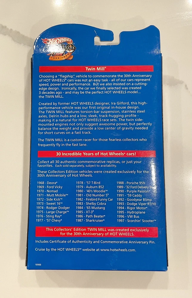 Hot Wheels 30 Years 1969 Commemorative Replica Twin Mill Red & Collectors Button. Condition is New. Shipped with USPS Ground Advantage.