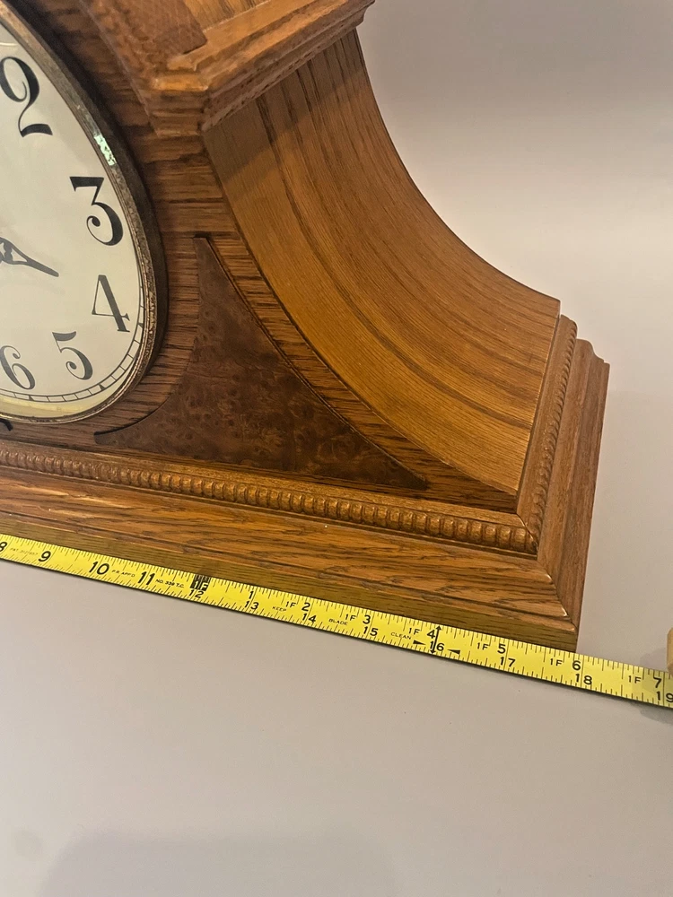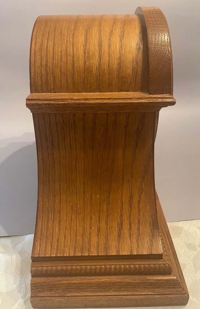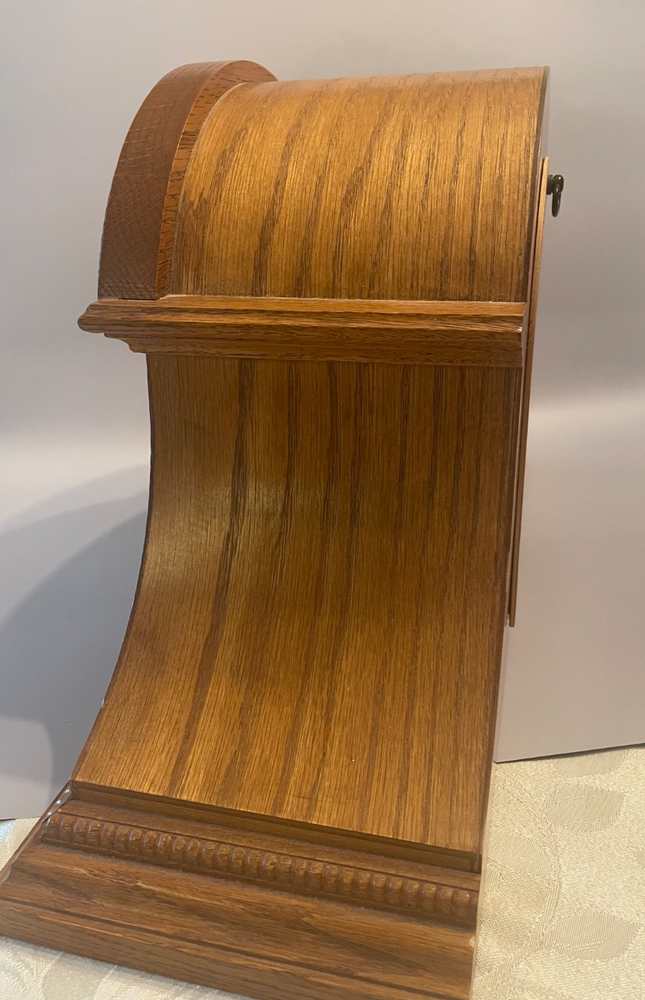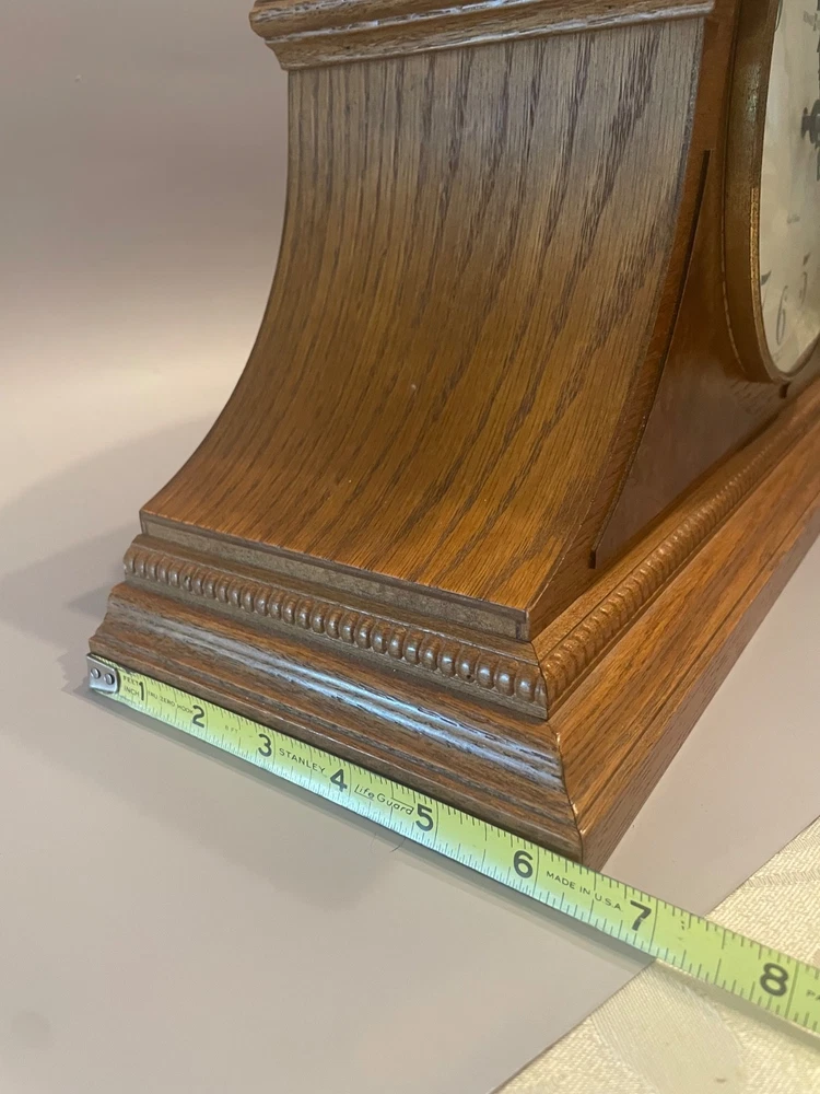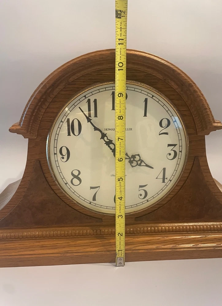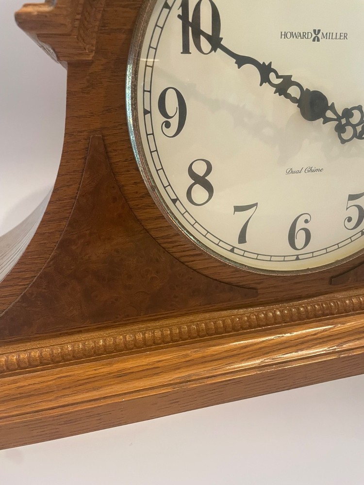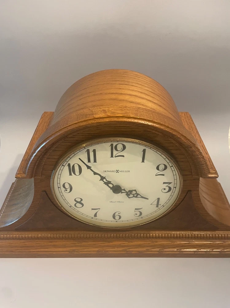 The Howard Miller Oak Mantle Clock Model 630-120 is a traditional-style clock with a quartz movement, making it accurate and efficient. This battery-powered clock features a dual chime, adding a pleasant sound to the room. Made with a wooden frame in an oak finish, it exudes a classic and timeless look. Proudly made in the United States, this mantle clock is a decorative collectible that adds sophistication to any home.