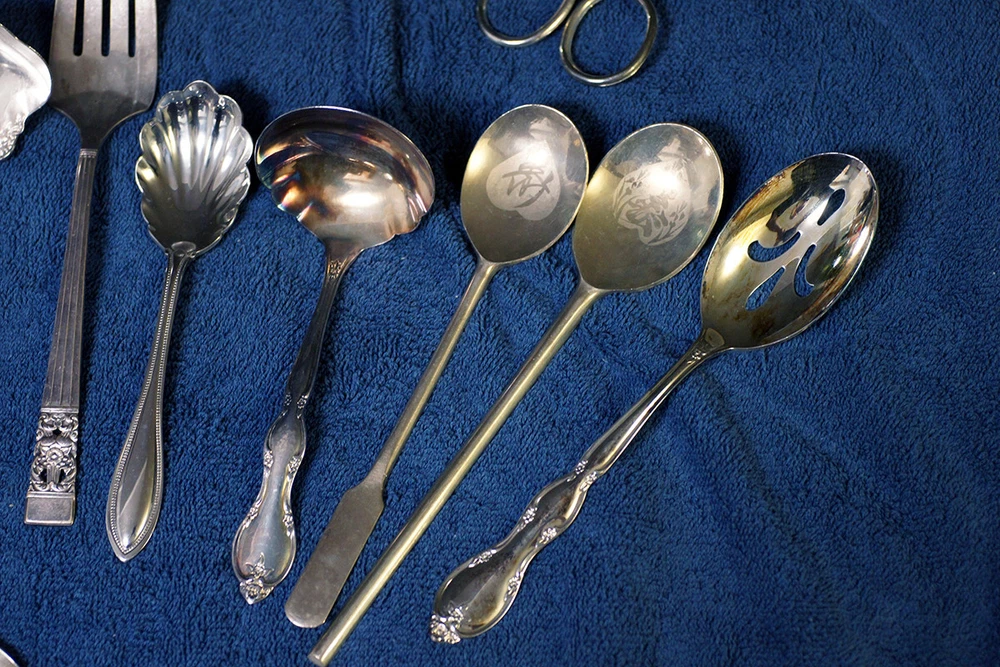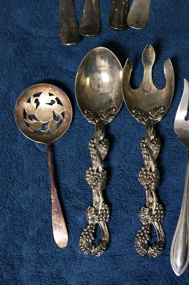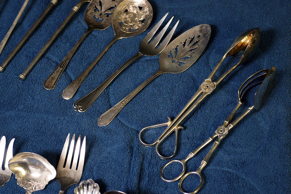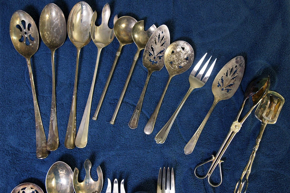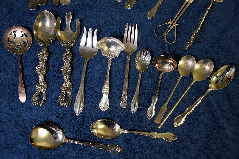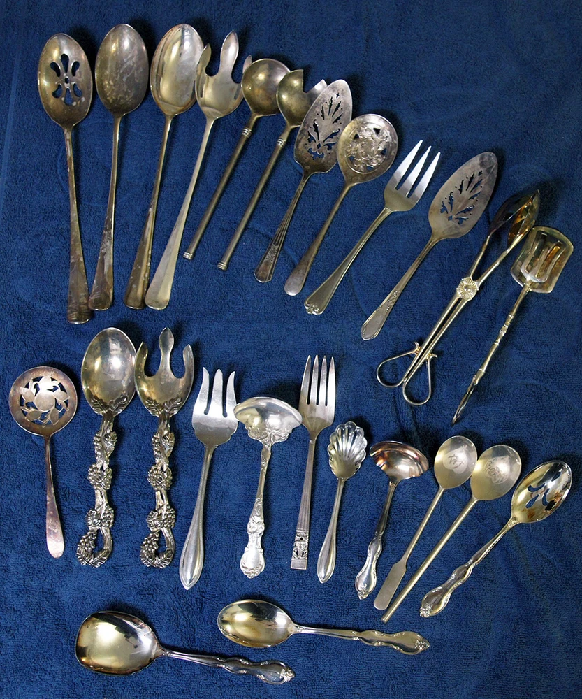 Lot includes the following brands and more that are unknown: Wm. Rogers and Son I.S. Community Plate Oneida Canada (This one is stainless) R. Wallace 1835 William A. Rogers A1 Plus International Stainless Some do not have a maker's mark NOTE: A few of these are stainless steel and not silverplated. Lot includes tongs, slotted spoons, non-slotted spoons, a sugar spoon, a ladle, pie servers, cake servers, tomato servers, and forks. Some of these are quite large, exceeding 12 inches in length. Many are quite old and tarnished, but you can see that they are good condition and can be easily cleaned. Some are quite ornate.