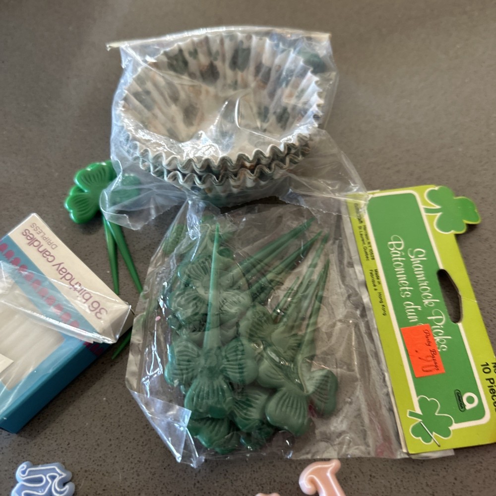 This product is a huge lot of vintage cake and cupcake toppers and decorations by Wilton, suitable for all occasions including Christmas . The large vintage-themed cake topper set features multicolor plastic pieces that can be reused. With a unique character family theme of st Patrick’s day, this collection offers a variety of colorful decorations to add a nostalgic touch to any cake or cupcake. Perfect for adding a touch of whimsy and charm to your baked goods for special occasions.
