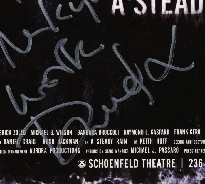 Hello! Thank you for checking out an Authentic Memorabilia Company listing! We are pleased to offer the following item and will happily answer any questions that you may have about it! Condition: Item is in good condition overall Authentication: Beckett Authenticated (Hologram) Notes: Measures 14 by 22 inches. Cardstock material poster/window card for their play A Steady Rain. Signed by both in Silver ink. Minor wear throughout, particularly to the corners. The Authentic Memorabilia Company Ltd. is proud to offer a Lifetime Guarantee of Authenticity. Many of our items are already authenticated or sourced from some of the collectible hobby's most reputable authorities including Steiner Sports, Upper Deck, Tri-Star, Professional Sports Authenticator (PSA), James Spence Authentication (JSA), Beckett Authentication Services (BAS), Sportscard Guaranty (SGC) and Roger Epperson Authentication Limited (REAL). Items that come with our company Certificate of Authenticity (COA) or Letter of Authenticity (LOA) also come with a Lifetime Guarantee of Authenticity. If an item purchased from us does not pass a reputable authentication service of your choosing, we will refund the entirety of your purchase price after it is returned to us. For additional information on reputable authentication services please see terms or contact us. Feel free to message us regarding wanting additional photos, information or any other concerns you may have.