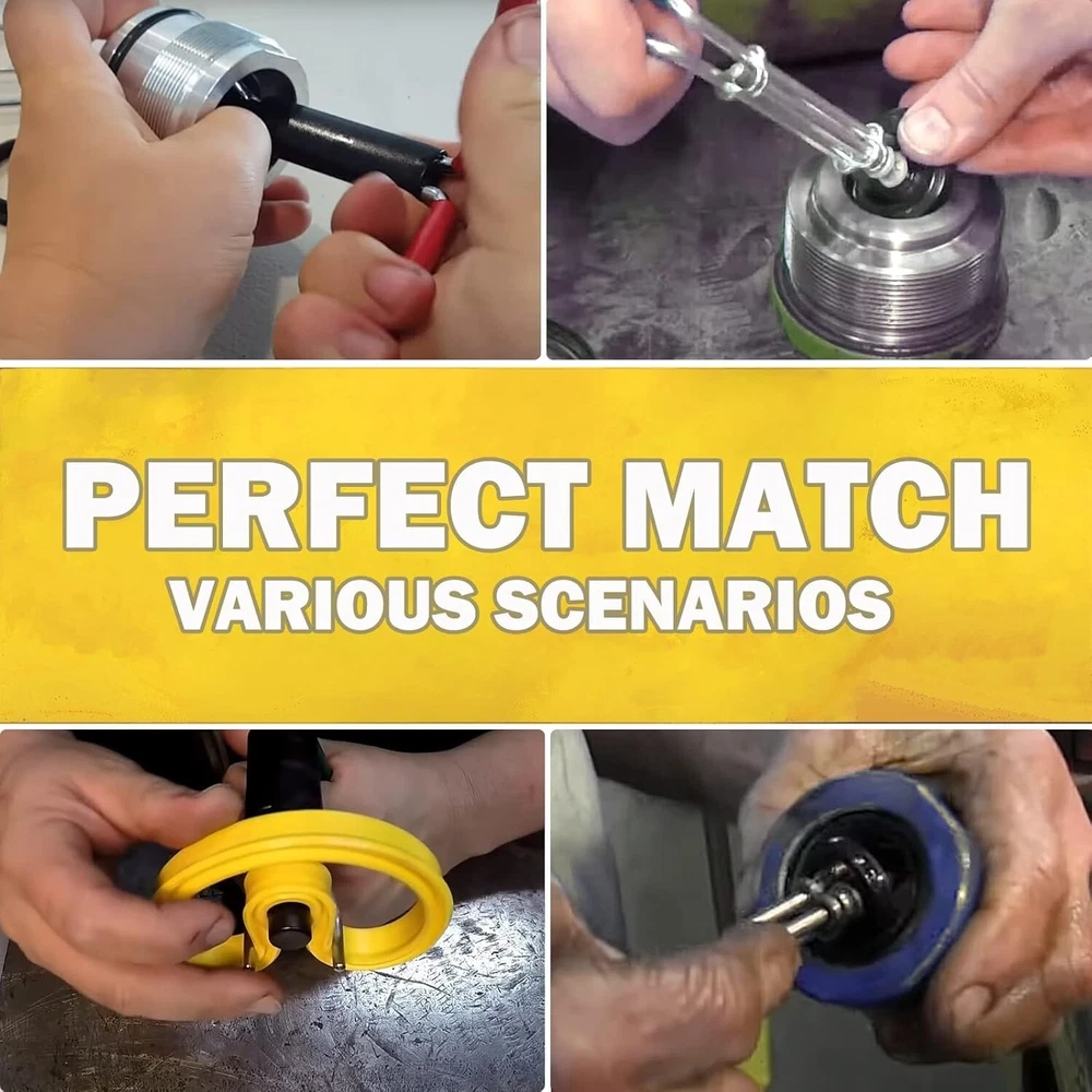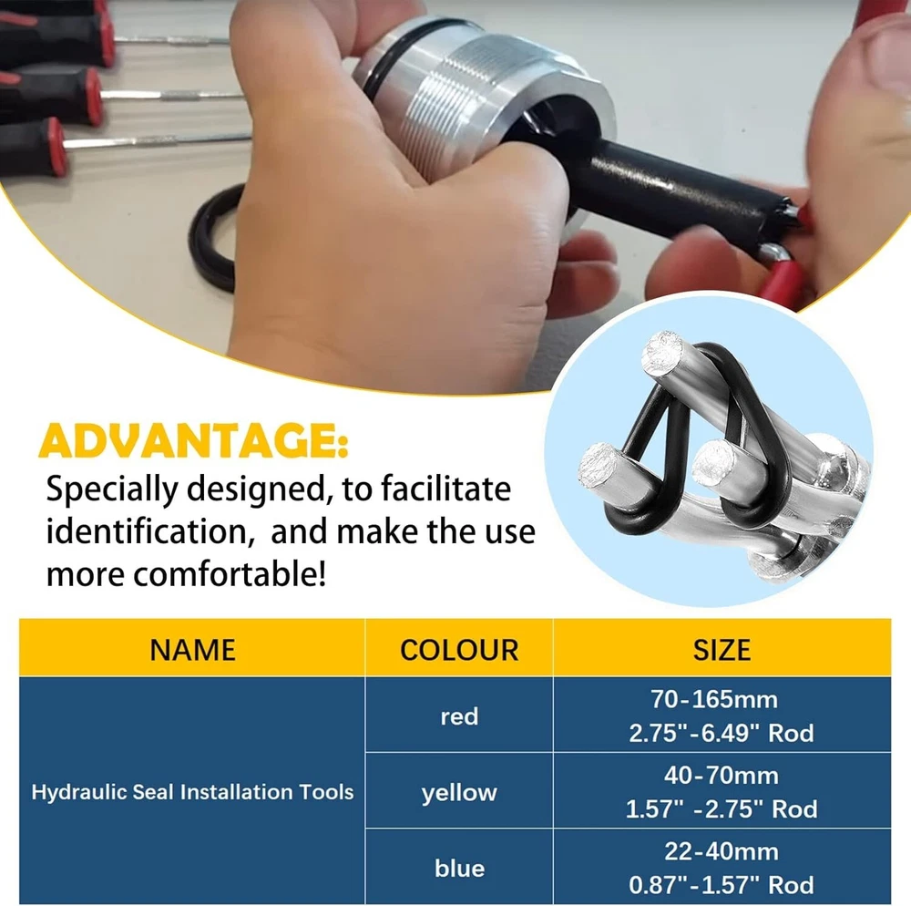 3 Pcs/Set Hydraulic Cylinder Piston Repair Seal Kit,Hydraulic Seal Installation Tools, U-Cup Rod Seal Installation Tool Kits Upgraded Seal Twistor Install Tool Set Universal J05321 USE PROCESS:Step 1, place the two thin feet of the tool inside the hydraulic ring. Step 2, rotate the handle so that the hydraulic ring is folded in the shape of an omega. Step 3, put it into the hydraulic cylinder and release the handle. PACKAGE COMBINATION:Includes 3 sizes to cover just about any rod seal installation job from 0.87" up.Small for rod diameters 22-40mm (0.87" - 1.57" ROD) gland hole, 6mm cross section max. Medium for rod diameters 40-70MM (1.57" - 2.75" ROD) gland hole, 8mm cross section max. Cross section max. Large for rod diameters 70-165MM (2.75" - 6.49" ROD) gland hole, 10mm cross section max. PERFECT FUNCTION:Rod seal install tool set is a quick and safe installation tool for flexible rod seals. Installing automotive ship hydraulic cylinders, bucket cylinder inner seals or O-rings or other inside types of seals, It is very simple by means of the rod seal installation tool set!Making smaller size than gland hole by turning seal to omega shape can avoid most of damages. PROFESSIONAL TOOLS:Specially designed, the colored handle is added to the handle of the hydraulic maintenance tool set to facilitate identification, avoid sliding during use, and make the use more comfortable! 100% SATISFACTION GUARANTEE-Your satisfaction is our top priority, We strive to provide customers with quality services.If you're not 100% satisfied with this tool set, simply return it for a full refund in 30 days. Premium Support & 12-Month Warranty. Payments Methods We accept PayPal payment only. About Us Welcome to factory-international , the home of High Quality Auto Parts. Repairing vehicles is our business with many years experience. We committed to provide the highest quality products, competitive prices and service for our customer. We make a variety of professional tools, high quality Auto Parts, also decoration to simplify your auto repairing work. We carry large stocks for immediate supply as well as a wealth of experience & skill to advise on any questions about technical data. Shipping Policy Orders will be ship out within 1-2 business days after payment has cleared. Orders from Saturdays, Sundays or holidays will process on next business day and will be ship within 24 hours. Please allow 10-30 days for international deliveries. Some shipments could take longer subject to your local customs authorities. United states 2-5( days) Shipping Method All our items are shipped from the United States and the package will be free of charge for Express Shipping via USPS , UPS or others. Absolutely Fast and Safe! Return & Warranty 1.if you're not 100% satisfied with our item, simply return it for a full refund in 30 days. 2.Leave a message note in returned box quoting your item(s) ID and buyer ID. 3.All returned products must be in their original condition and package. Unfortunately, if products have been assembled or modified, we cannot take them as returns. 4.It is important that we know when your return is expected. Please save your return tracking number or post receipt, and email it to us. We need this in case there are any issues during transit. 5.Refund will only be issued upon our receipt of the returned parcel. Please allow 2 working days for us to process with your return. We support 12 months’ Warranty . If you have any problems about our products, kindly please feel free to contact us . About Reply If you have any questions, please feel free to email our service specialists 24 Hours a Day, 7 Days a Week, and we will reply you ASAP. If no response within 24 Hours, please check the spam of mail box or kindly re-send it to us. About Feedback Please contact us before leaving Negative feedback or open any disputes on PayPal and eBay if you are not satisfied our service or products. Good communication is helpful for both of us to resolve any problems and issues. We work hard to make sure EVERY CUSTOMER 100% SATISFIED and resolve any problem for you and always leave positive feedback to all our customers.