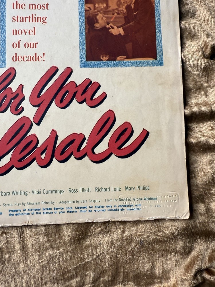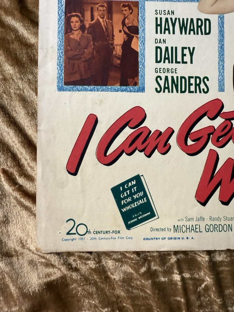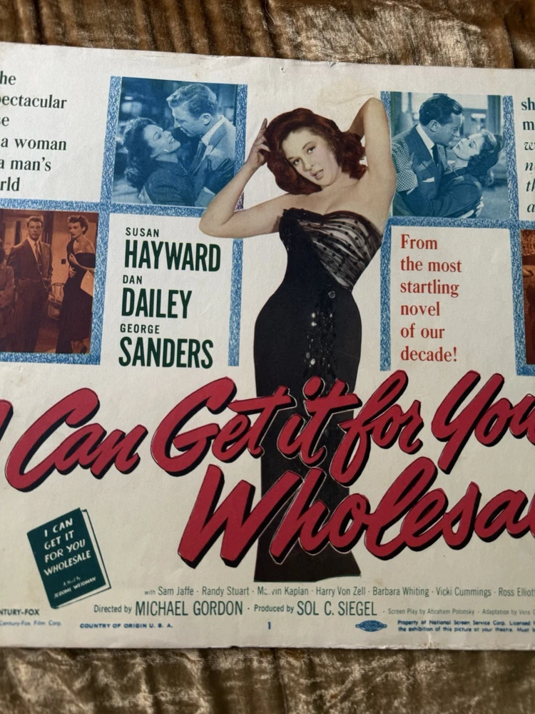 I Can Get It for You Wholesale Lobby Card π Susan Hayward & George Sanders 1951 βΈ» Original 1951 20th Century Fox lobby card from I Can Get It for You Wholesale, a bold and stylish drama starring the magnetic Susan Hayward, with Dan Dailey and George Sanders. A daring tale of ambition, seduction, and survival in the cutthroat fashion industry, this film follows a woman determined to rise in a manβs worldβarmed with beauty, brains, and unapologetic drive. A sizzling slice of mid-century Hollywood, perfect for fans of fashion drama, femme-forward narratives, and Susan Haywardβs iconic firebrand energy πΌππ βΈ» π Item Details: β’ π¬ Title: I Can Get It for You Wholesale β’ ποΈ Studio: 20th Century Fox β’ π Year: 1951 β’ π Format: Lobby Card (11β x 14β) β’ π Starring: Susan Hayward, Dan Dailey, George Sanders β’ βοΈ Screenplay by: Abraham Polonsky β’ π Based on: Novel by Jerome Weidman β’ π₯ Directed by: Michael Gordon β’ π‘ Condition: Vintage β minor wear consistent with age (see photos) βΈ» π Why This is a Gem: β’ Susan Hayward at her most powerful and provocative β’ A glam, gritty peek behind the fashion industryβs glossy faΓ§ade β’ A must-have for collectors of 1950s drama & feminist cinema icons β¨π§΅π βΈ» π¦ Shipped with care and tracking π¬ Open to offers β own this fierce vintage classic today! ποΈπ₯