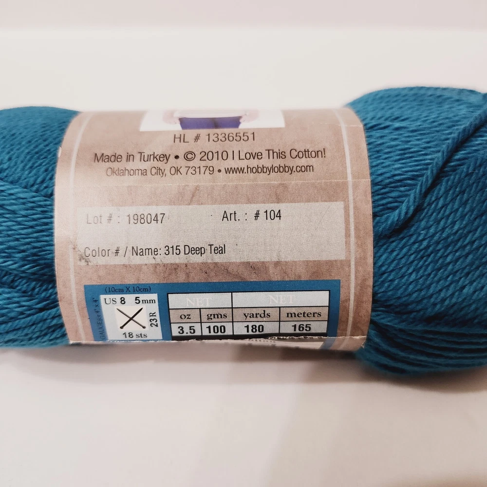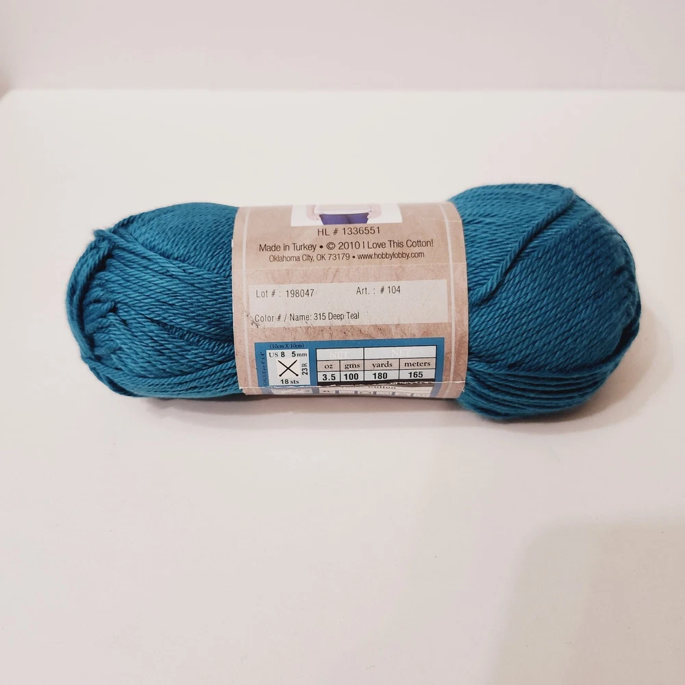 I Love This Cotton Yarn Color Deep Teal Skein 3.5 Oz