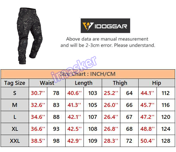 IDOGEAR Men's GEN3 Tactical Pants Army Camo Combat Pants BDU Trousers Knee Pads Package: a pair of pants,knee pad x2pc IDOGEAR Gen3 Combat Suit &Pants is make by High Quality Nylon and cotton material, wearable and comfortable tactical uniform shirt & pants. It is designed as a no-compromise assault uniform, these pants are aggressively cut for maximum mobility. These combat-proven pants are sized in 2-inch waist increments and multiple lengths for a perfect fit. Features a unique padded waistband and hi-mobility stretch panels at the knee and lower back. 10 pockets . Features: Material: 50% Cotton & 50% Polyester & Teflon coating Unique low-profile waist adjust system Each cargo pocket conceals water bottle/magazine stabilizer Dedicated knife/light holder that still allows pocket access Simple kneepad height adjuster located in front thigh pocket Designed for use with removable AirFlex™ Combat Knee Pads Built-in flap covers kneecap opening when not using knee pads Stretch gusseted crotch Size Chart:1inch=2.54cm Size Chart : INCH/CM Tag Size Waist Length Thigh Hip S 30.7'' 78 40.6'' 103 25.2'' 64 44.1'' 112 M 32.6'' 83 41.3'' 105 26.0'' 66 45.7'' 116 L 34.6'' 88 42.1'' 107 26.4'' 67 47.2'' 120 XL 36.6'' 93 42.5'' 108 26.8'' 68 48.8'' 124 XXL 38.5'' 98 42.9'' 109 28.3'' 72 50.4'' 128 Fit height weight 121lb 132lb 143lb 154lb 165lb 176lb 187lb 198lb 209lb 220lb 64.9 inch S S M M L XL 66.9 inch S S S M M L XL XXL 68.8 inch S S S M M L L XL XXL 70.8 inch M M M M M L L XL XXL XXL 72.8 inch M M M M L L XL XXL XXL 74.8 inch L L L L L XL XXL XXL 76.7 inch XL XL XL XL XXL XXL Note: 1.Actual fabric colors may vary slightly from online colors due to variations in screen color settings. 2.The size is Asian size ,To be safe,Please measure one of your own Pants to make comparison with ours, so as to select a correct size.Please measure yourself before ordering,contact us if you are not sure. Payment 1. We accept PAYPAL only. 2. Payment must be made within 7 days of auction closing (Unpaid dispute will automatically open when item is not paid in 7 days). 3. PLEASE NOTE: SHIPPING&HANDING DOES NOT INCLUDE DUTIES, LOCATL TAXES OR ANY OTHER IMPORTATION FEES. 4. Please list your special requests (color, packages, value of declaration, etc.) in the EBAY NOTES SECTION when you make payment Shipping 1. We Ship to Worldwide 2. We ship your orders within 1-2 business days after the payment cleared. 3. Item shipped from China via china Post Airmail, reach most of the countries within 2 to 4 weeks. 4. Delivery time depends on destination and other factors, it may takes up to 20 days. If you don't receive the item after 25 days,please contact us, we'll investigate and solve the delivery problem. 5. Import duties, taxes, and charges are not included in the item price or shipping cost. These charges are the buyer's responsibility. Please check with your country's customs office to determine what these additional costs will be prior to bidding or buying. Warranty Return 1. Customer satisfaction is our top goal. All products are quality checked. They are new and in good condition when shipped to our customers. If product is defective or damage upon arrival, or wrong product shipped, please contact us immediately. Returns accepted within 14 days of delivery date and item must be in original new condition, not worn or altered in any way with attached tags & wrap. Otherwise deal is final. Return shipping must be paid by buyer. 2. Please contact us first if you have anyproblems/questions/concerns. We will be happy to resolve any issues you may have in a cordial and friendly manner. 3. We appreciate your Positive Feedback, and will do the same in return. PLEASE DO NOT leave negative feedback without first communication with us. Please allow max 24 HOURS for us to respond About Feedback We maintain high standards of excellence and strive for 100% customer satisfaction! Feedback is very important to us. We request that you contact us immediately BEFORE you give us neutral or negative feedback, so that we can satisfactorily address your concerns.It is impossible to address issues if we do not know about them! Contact Us We care about our valued customers, if you have any questions, please feel free to contact us in EBAY MESSAGE, our Customer Service staffs will be very pleasure to reply you in 24 Hours.