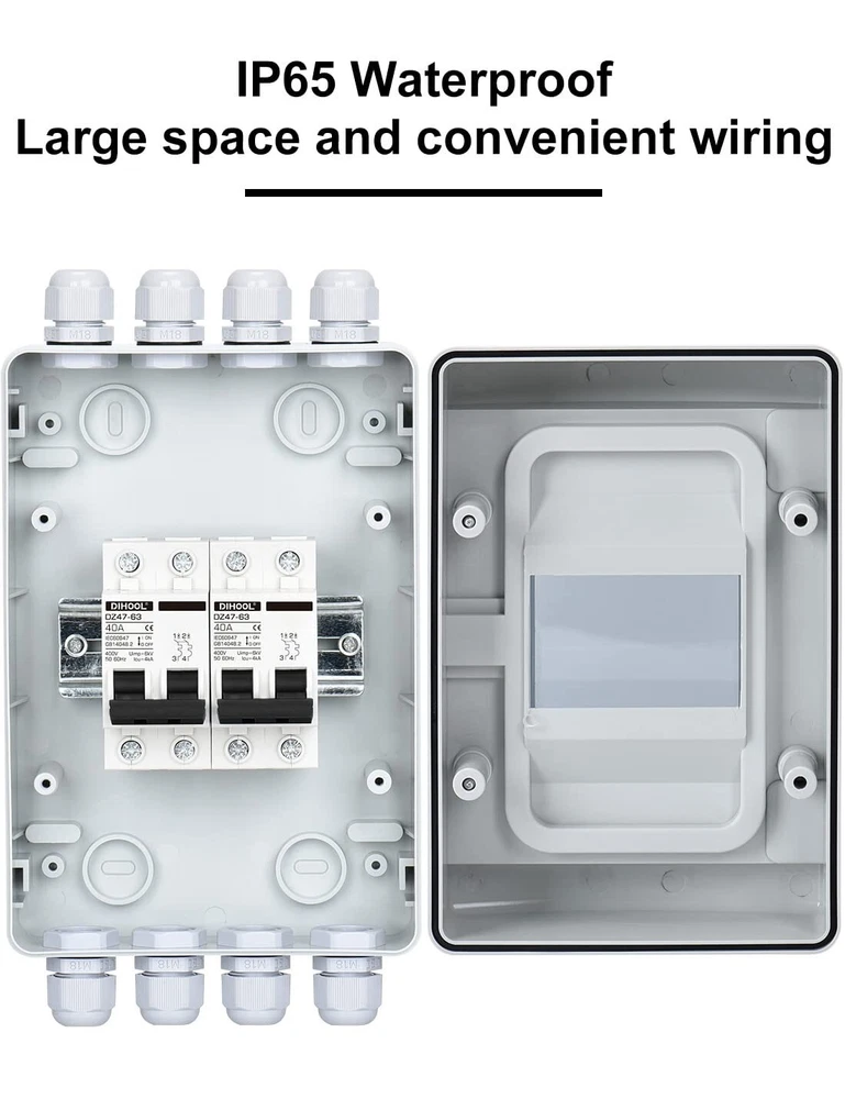IP65 Rated Solar Disconnect Switch Box, 40 Amp Power Distribution Solution ‹ › ‹ › ‹ › ‹ › ‹ › ‹ › ‹ › ‹ › ‹ › IP65 Rated Solar Disconnect Switch Box Your Ultimate 40 Amp Power Distribution Solution High Capacity: Equipped with a robust 40 Amp AC/DC Circuit Breaker, designed to ensure optimal performance in varying electrical setups. No Polarity Issues: Features a no polarity design for ease of installation and use. Waterproof Rating: IP65 Waterproof Box that shields your connections from dust and water, making it perfect for outdoor applications. Rated Voltage: Supports DC voltages from 12V to 400V and AC voltages between 90V to 400V; allows for protective measures for both - and + poles, as well as L and N poles. Adaptability: Compatible with a wide range of cables; accepts adapter cables with diameters from 5-10MM and supports 10-4 AWG cabling for large wiring spaces. Transparent Cover: The thoughtful design includes a transparent cover, enabling you to easily check the status of the circuit breaker at a glance. Versatile Use: Ideal for photovoltaic solar panel grid-connected systems, solar off-grid systems, solar power generation systems, and RV solar setups. Why Choose Our Solar Disconnect Switch Box? In the world of renewable energy, safety and efficiency are paramount. Our IP65 Rated Solar Disconnect Switch Box offers superior performance, ensuring the integrity and stability of your solar power systems. With its high amperage capacity, no polarity design, and top-tier waterproofing, this switch box is your ultimate companion for all solar energy solutions. Don't compromise on quality and performance. Secure your power distribution needs with our dependable Solar Disconnect Switch Box today! Order now and experience peace of mind with your solar installations. Shipping Free & Fast Shipping - We offer free shipping to most of the USA with a normal delivery time of 3-7 days. However, due to the current situation, additional delivery time (up to 3 weeks) may be required for some items. Alternative Carriers - We may use alternative carriers (e.g. USPS, FedEx, UPS, etc.) to ensure your package arrives safely and on time. Due to the use of multiple carriers, we are unable to provide a tracking number automatically. Handling Time - Orders are processed and shipped within 1-2 business days of receiving cleared payment. Shipping Restrictions - Shipping to Alaska, Hawaii, Puerto Rico, Guam, and other US territories may incur shipping charges or delivery restrictions. Please contact us before ordering, or your order can be refunded/cancelled. State Restrictions - There may be restrictions based on your state of purchase. For example, certain items may not be shipped to California due to state regulations. Contact for Tracking Updates - If you require tracking updates or have any concerns about the delivery of your order, please feel free to contact us, and we will be happy to assist you. Return 30-Day Hassle-Free Returns - We want you to be completely satisfied with your purchase. If you are not, you can return the item within 30 days of receiving it for a full refund or exchange. Easy Return Process - To start a return, simply contact us and we will provide you with a prepaid return shipping label and detailed instructions. Restocking Fee - There are no restocking fees for returns. However, the buyer is responsible for return shipping costs if the return is not due to a seller's error. Refund Processing Time - Refunds will be processed within 5 business days of receiving the returned item in its original condition. Payment We accept all major credit cards, PayPal, and Apple Pay for your convenience. Your payment information is secure and encrypted to ensure a safe and seamless transaction. Please complete your payment within 3 days of purchase to avoid any delays in shipping. Feedback Your feedback is extremely important to us. We strive to provide the best products and customer service possible. If you are satisfied with your purchase, please take a moment to leave us a positive review. If you have any concerns or issues with your order, please contact us before leaving negative feedback. We are committed to resolving any problems and ensuring your satisfaction. Contact Us If you have any questions or concerns, please feel free to reach out to our customer support team. You can contact us through the eBay messaging system. We are available Monday to Friday, 9:00 am to 5:00 pm EST, and we will do our best to respond to your inquiry within 24 hours. Buy it now and enjoy a pleasant shopping experience! UPC: Not Set Model: Not Set Unit Quantity: 1 Application: Automotive,Commercial,Data Centers,Electrical Wiring,Electronics,Healthcare/Safety,Home/Garden,Industrial,Marine,Transportation,Travel Features: Illuminated,Phase control,Plug-On Neutral,Thermal Overload Protection,Trip Indicator,Waterproof,Easy to Install,Transparent Cover Material: Plastic Suitable For: Exterior,Interior,Wall Smart Home Protocol: Not Set Mounting Style: Ceiling,Panel,Surface,Wall Control Style: Switch Resistance Properties: Childproof,Moisture Resistant,Waterproof,Weatherproof Protection Properties: Lightning Protection,Overload Protection,Surge Protection Room: Any Room,Bathroom,Bedroom,Garage,Indoor/Outdoor,Kitchen,Living Room,Lounge,Patio,Utility/Laundry Room Brand: Unbranded Plug Type: Not Set Number of Positions: 1 Number of Gangs: 2 Number of Throws: 1 Number of Phases: 1 Type: DC Circuit Breaker Current Type: AC/DC Maximum Amperage: 40 A Current Rating: 41-50 A Operation Method: Not Set Voltage: DC 12-400V MPN: Not Set Number of Outlets: 0 Number of Ports: 0 Number of Poles: 2 Number of Spaces: 1 Number in Pack: 1 Tripping Characteristics: Not Set Item Height: Not Set Item Width: Not Set Color: Black Interruption Type: Not Set Break Time: Not Set Compatible Wire Gauge (AWG): 10-4 Country/Region of Manufacture: Not Set Number of Circuits: 2 IP Rating: IP65 Electrical Connection