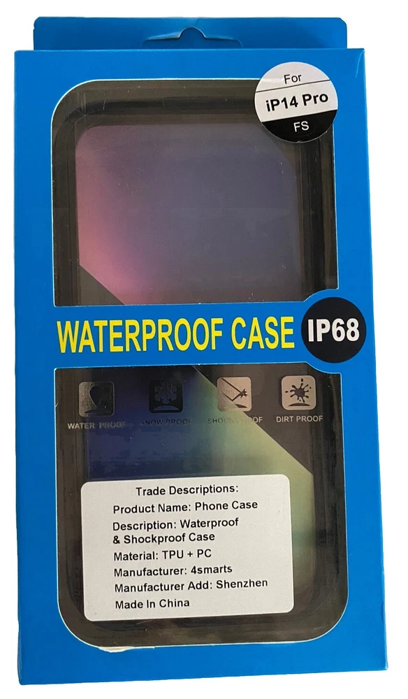 Safeguard your Apple iPhone 14 Pro with the 4Smarts IP68 Waterproof Dust/Shock Proof Case. This robust full body case offers 360 protection, shielding your device from dust, shocks, and water. Its dual-layer construction combines a soft silicone interior with a tough PC hard shell exterior, ensuring your phone remains secure and shielded from daily wear and tear. The case's transparent, hybrid design with a thin fit profile maintains the phone's sleek look while providing a rugged exterior for durability. It's fully functional with accessible controls and includes a lanyard for easy carrying. Whether you're out for a run or enjoying a day by the beach, this case ensures your iPhone is protected at all times. In unused condition. Pkease refer to pics for further details. Thank you for shopping at Funkee Munkee New & Rescued Treasures.