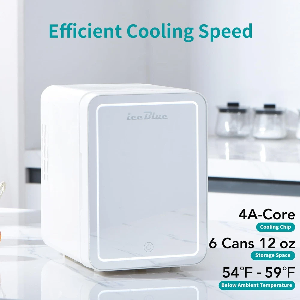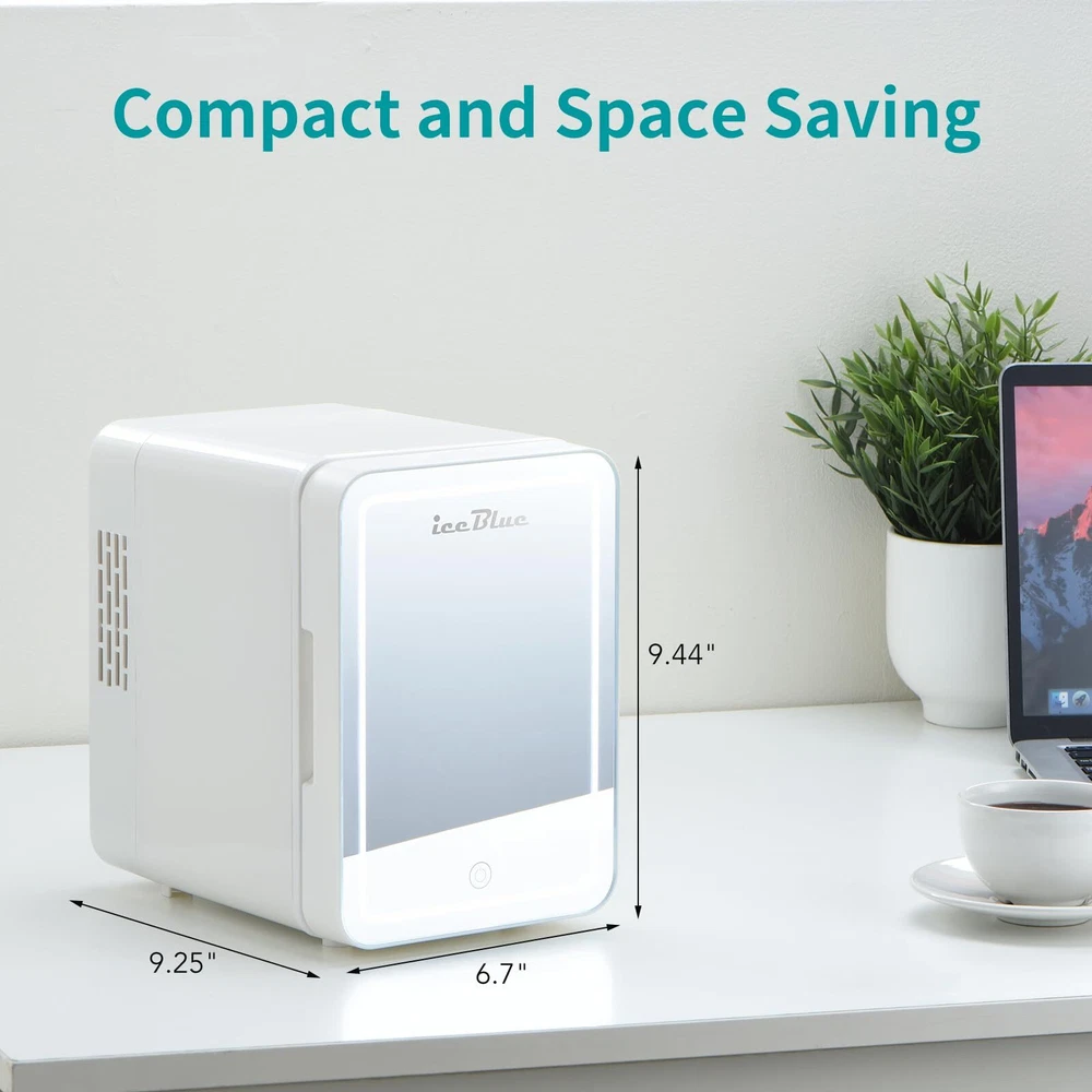 【Encounter New Favorite for Exquisite Life】The 1st visible window design on the door allows you to see surprises inside at a glance without opening the refrigerator door. Whether it's for storing beverages, keeping fruits fresh, or refrigerating skin care products, it can perform perfectly. The mini fridge for bedroom with a visible window brings aesthetics and practicality together, adding endless convenience and beauty to your life 【Multifunctional 4 Liter Mini Skin Care Refrigerator】Quickly switch temperatures through the cold and warm buttons to extend the shelf life of skin care products, heat masks, store food and beverages or keep breast milk warm 【Three-digit Luminous Mirror】This mini refrigerator, oversized high-definition mirror and LED lights are designed to help you easily apply skin care products and cosmetics in different environments and lighting 【Fashion Meets Function】This beauty refrigerator is equipped with a removable shelf and door pocket for easy allocation of storage space. Your cosmetics and beverages can stay cool and provide the best temperature for your skin care products 【Low Power Consumption】Our portable refrigerator adopts advanced technology. Semiconductor cooling is faster and more efficient. It does not use liquid refrigerants and does not add Freon 【Wide Range of Applications】Whether you are indoors, in the bedroom, in the car, in the office, in the dormitory, on a ship, in an RV, or while traveling, the Iceblue mini refrigerator is your best choice. With 110 volt AC adapter / 12 volt DC: Household AC adapter and mobile DC line