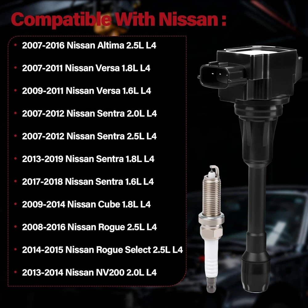 Free eBay listing template designed by dewiso.com Ignition Coil Pack and Spark Plugs Fits for 2007 2008 2009 2010 2011 2012 2013 Nissan Altima Versa Sentra Rogue Cube NV200 2.5 1.8 1.6 2.0 L4 Spark Plugs Coil Packs Replaces# UF549 & 9029 FREE AND FAST SHIPPING! About this item 🔧 Direct OEM Replacement & Precise Fitment:Ignition Coil Pack & Spark Plugs for 2007-2016 Nissan Altima 2.5L L4 | 2007-2011 Nissan Versa 1.8L L4 | 2009-2011 Nissan Versa 1.6L L4 | 2007-2012 Nissan Sentra 2.0L L4 | 2007-2012 Nissan Sentra 2.5L L4 | 2013-2019 Nissan Sentra 1.8L L4 | 2017-2018 Nissan Sentra 1.6L L4 2009-2014 Nissan Cube 1.8L L4 | 2008-2016 Nissan Rogue 2.5L L4 🛡️OE Number: UF-549, C1696, COP292, C751, UF549X, UF549, GN10241, 5C1753, E1049, 52-2108, IC629, 22448ED000, 22448JA00A, 22448JA00C, 1788369, IGC0002, 673028, 22448-ED000. 🚀 Enhanced Engine Performance:Experience smoother idling, quicker starts, and improved acceleration. Featuring high-conductive copper wire and corrosion-resistant materials, our coils ensure optimal spark delivery for maximum fuel efficiency and restored engine power. 💪 Rigorous Quality & Certified Manufacturing:Each coil undergoes 100% functional and leakage testing before shipment for your peace of mind. ✅ 2-Year Warranty & Trusted Support:We stand behind the quality and reliability of our products. Your purchase is protected by a full 24-Month Warranty. Product We offer a 30-Day Return Policy on items which you are not completely satisfied with. You have the option for a full-refund or an exchange of the item. No returns are available on items shipped outside of the US . Shipping We offer Free Shipping to the US and ship within 2 business days of payment, usually sooner. We use UPS express shipping. That's why your products are usually delivered within 3 days . Contact We try our very best to make sure every customer is completely satisfied. If there's a problem , message us! We're happy to help. 24/7 live chat available.