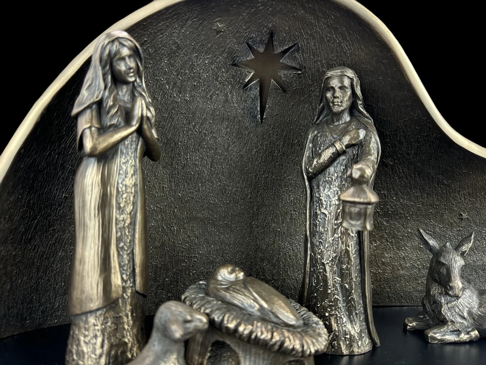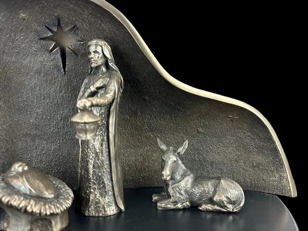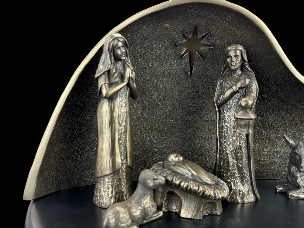 ✅Perfect as a gift ✅Exclusive decoration for any interior ✅Covered with natural bronze ✅Hand-painted ✅Full of clear details and details ✅Original and signed (Genesis brand) ⚡Illuminated Large Nativity Scene is a sculpture that will delight every person with beautiful details. It is an extremely realistic figure. It fits into any home or office interior - creating an exclusive decoration. ❗️❗️ The whole figurine looks fantastic, and the photos do not do it justice. We assure you that the Veronese brand guarantees quality and appearance. ❗️❗️ ➡️Parameters Manufacturer: Genesis (GN09834Y1) Dimensions: 44 cm x 8.5 cm x 21 cm Weight: 2.1 kg ➡️ Genesis Brand: Products marked with the Genesis sign are the highest quality items - utility and decorative. They are made of a mixture of alabaster, polyresin covered with bronze. The Genesis brand catalog includes figures, sculptures, bowls, clocks, jewelry boxes, photo frames, platters, masks, vases. Genesis is a brand known all over the world. ➡️Care: Figurines can be wiped with a wet cloth or with anti-dust agents. ➡️Packaging: Each product has a protective polystyrene form and an aesthetic cardboard box. The perfect gift for any occasion: ✔️ birthday gift, Christmas gift ✔️ gift for Grandpa's Day, ✔️ gift for Grandma's Day ✔️ gift for your wife ✔️ gift for your mother ✔️ on the occasion of retirement
