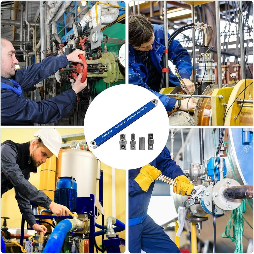 Impact Ready Offset Extension Wrench, Tight Reach Wrench Set, Blue Product Details Color: Blue Brand: Bqweun Material: Carbon Steel Item Length: 15.4 Inches Item Package Quantity: 1 Head Style: Fixed Square Finish Type: Powder Coated Operation Mode: Mechanical Manufacturer: Bqweun Part Number: BYA039a Item Weight: 1.68 pounds Item model number: BYA039a Finish: Powder Coated Power Source: no-power Batteries Included?: No Batteries Required?: No Color: Blue Brand: Bqweun Material: Carbon Steel Item Length: 15.4 Inches Item Package Quantity: 1 Application: The tight reach extension wrench can be extended in a limited space, so that the ratchet wrench used with it has room to move. The swing range is small, saving time and effort, and it can be easily operated in a small space. Material: This offset extension wrench is made of high carbon steel and has a zero degree swing arc. Built-in high-strength special chain can save effort and improve efficiency. Specifications: Our multi-functional extension wrench is 15.4 inches long and only 0.63 inches thick and can be used with a variety of ratchet wrenches. Practical: Our extension wrench is equipped with four types of adapters to meet different usage needs. Suitable for auto repair and home improvement. Buy with Confidence: We are committed to providing you with the best tool support, if you have any questions about the product, please contact us, we will reply you as soon as we receive the email.