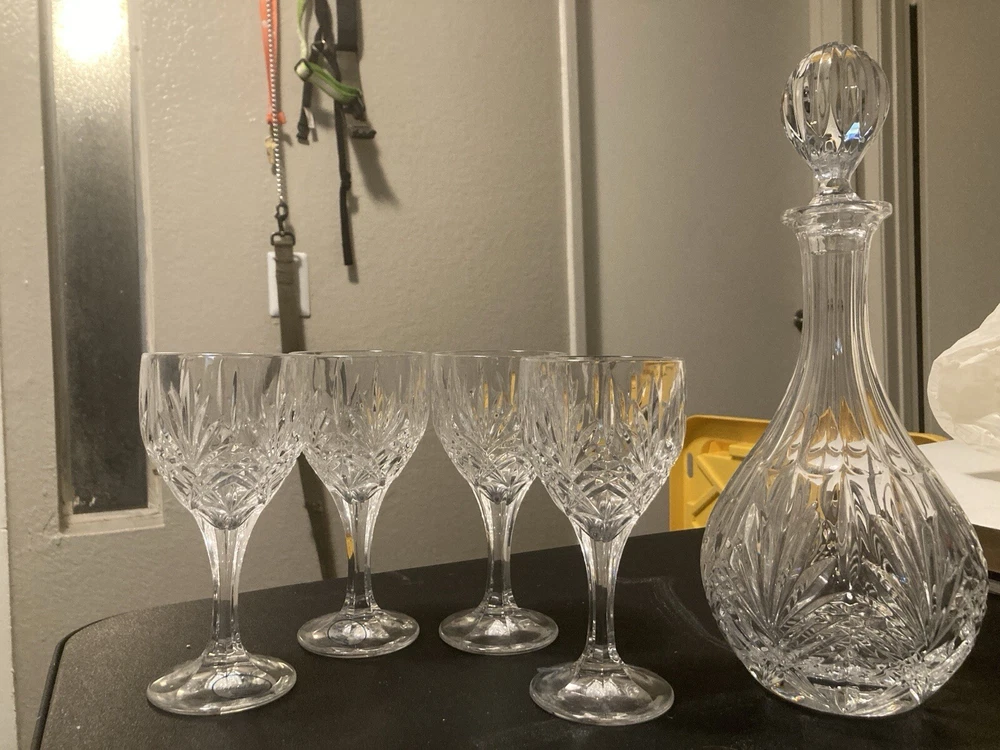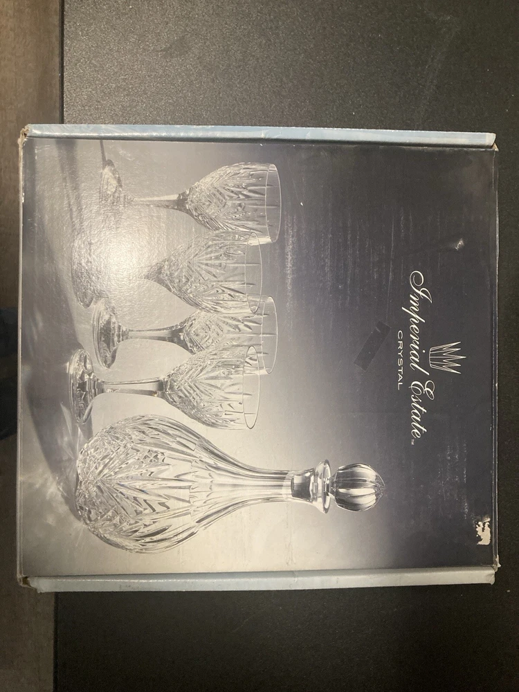 Features:WashableSet Includes:Decanter, Glasses, Lid/StopperOriginal/Reproduction:OriginalNumber of Items in Set:5Material:CrystalColor:ClearBrand:imperial estateType:Decanter