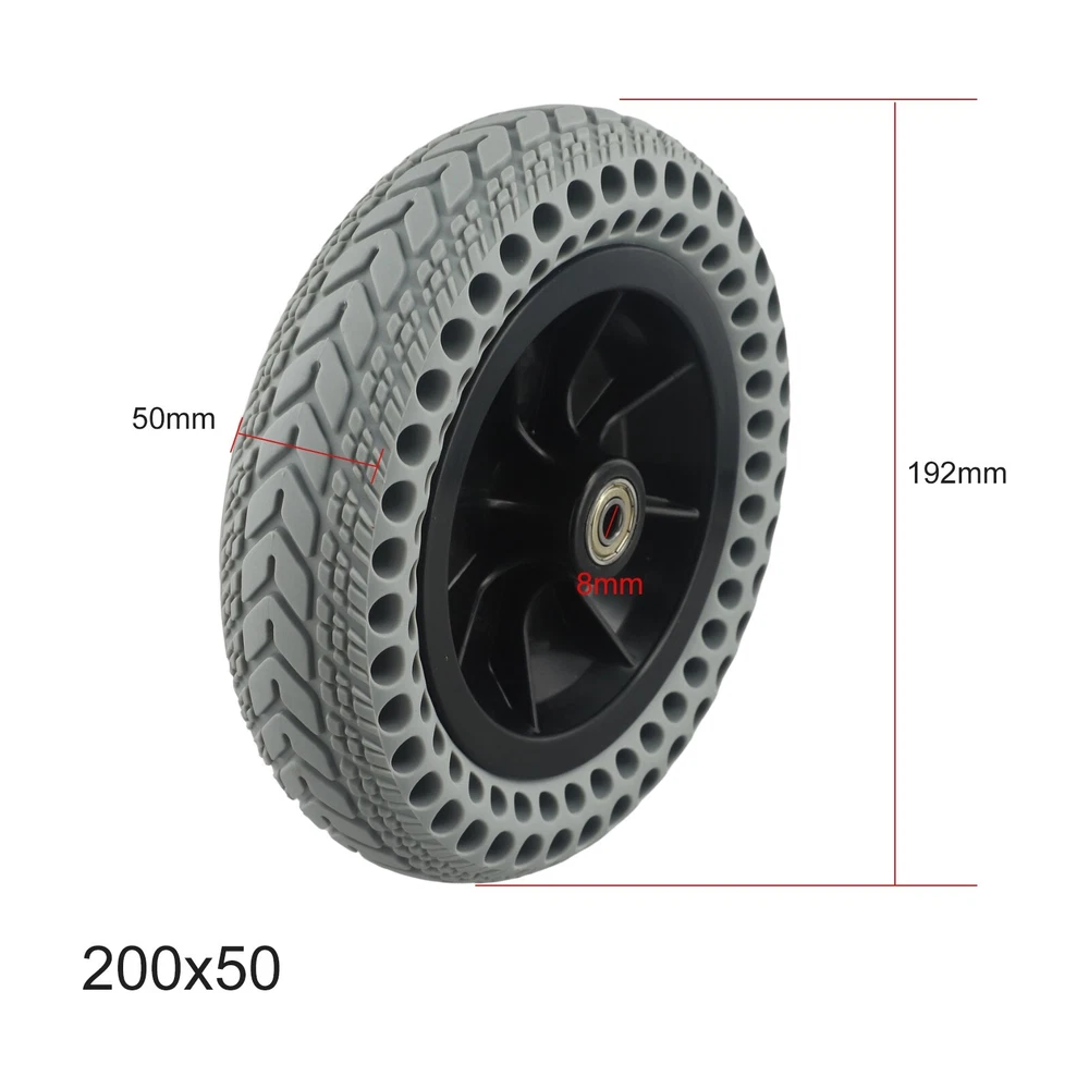 Improved Traction 8 inch 200x50 Electric Wheel Hub for Electric Scooters DESCRIPTION : It is illegal to ride electric scooters on public roads, pavements, or cycle paths. They are intended only for use on private land with the owner's permission. Features: *Suitable for tires of models 200x50 *Special lines on the tire , better grip. *Thickened material, and not easy to wear. *Made of high-quality rubber, it is stronger and stronger, and the driving is safer Specifications: *Product Name:8 inch 200x50 Solid Wheels Electric Wheel Hub for Wheelchair Electric Scooter *Material:Rubber+plastic *Size:About 192*50mm *Color:Black+Grey *Weight: 655g Package Content: 1x Solid Wheels Note: 1. The real color of the item may be slightly different from the pictures shown on website caused by many factors such as brightness of your monitor and light brightness. 2. Please allow slight manual measurement deviation for the data. POLICES Shipping Payment WARRANTY We only ship to confirmed ebay Order addresses. Please comfirm that your Order address is in line with your shipping address. Please kindly note that the c ombined shipping is not provided because the shipping fee is calculated by weight. Also, the each additional item means exactly the the same color and size. It takes about 7 -15 working days to US; about 10-30 working days to other countries. Transit time may be a little delayed because of the bad weather and customs inspection . If you do not receive your item within 30 working days since payment finished, please contact us immediately for further assistance. Payment must be completed within 5 days. If you have any problems about payment, please contact us via ebay message. We strive for 100% customer satisfaction! Positive Feedback is very important to us. If you have any questions, p lease feel free to contact us via "Ask seller a question" . We will reply your email within 24 working hours. On Jan 2, 2025 at 09:36:50 PST, seller added the following information: