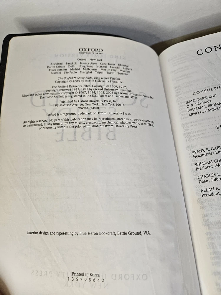 This KJV Red Letter Scofield Study System Holy Bible is a precious addition to any library. With its bonded leather cover and indexed tabs, it is perfect for young adults and adults who are studying the Bible. The Bible is published by Oxford and written by Richard Dillon, making it a valuable part of the Historical book series. The Bible is in English and has a total of 66 books. It measures 6 inches in length, 2 inches in height, and 8 inches in width. This paperback Bible is not vintage and was published in 2003. It is suitable for anyone who is interested in religious and spiritual topics. Please view photos for a fair representation of condition