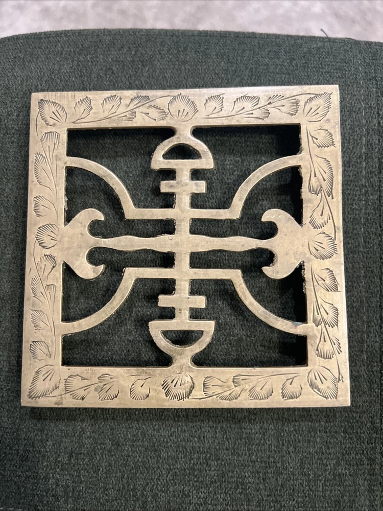 India 100P Brass Trivet With Etched Leaves 5 In X 5 In