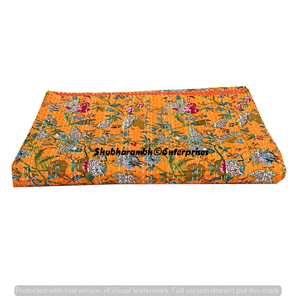 Size: Queen Custom Bundle: No Theme: Asian UPC: Does not apply Care Instructions: Machine Washable Weight: 1.200 Kg {Approx } Shape: Rectangular Item Width: 108'' Inches { 274 Cm } Material: 100% Cotton, Cotton gtin13: Does not apply Personalized: Yes Style: Kantha Closure Type: No Closure Item Length: 90'' Inches { 228 Cm } MPN: Does Not Apply Wash Care: Machine Washable Country/Region of Manufacture: India Thread Count: 1000 or More Type: Comforter Insulation: All Seasons Product Line: Hand Print Pattern: Bird Color: Orange Brand: Handmade Features: Decorative, Quilted Size In Inches: 90'' x 108" Inch (228 x 274 Cm)